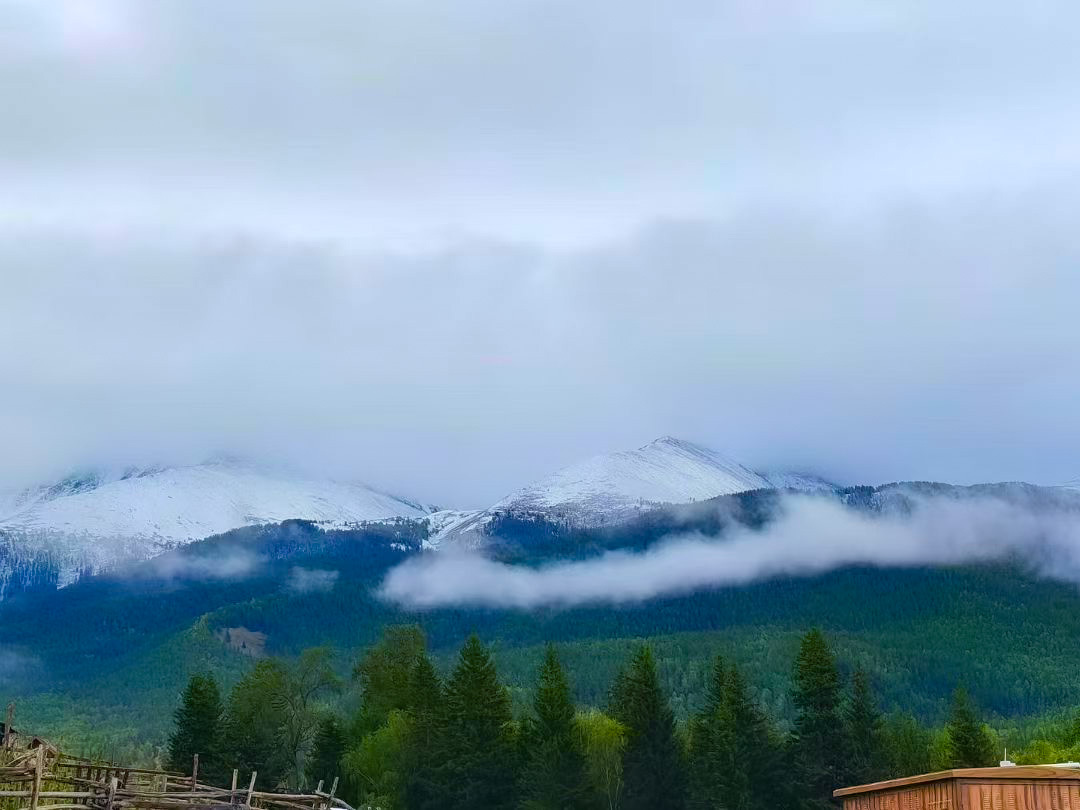 8月31日,新疆阿勒泰地区哈巴河县白哈巴村宛如世外桃源。蓝天白云下,雪山巍峨耸立,山间云雾缭绕,似轻纱般缠绕山腰,山脚下,森林郁郁葱葱,绿意盎然。白哈巴村的木屋错落有致,与自然环境和谐相融,静谧中透着古朴,仿佛一幅浑然天成的山水画卷。