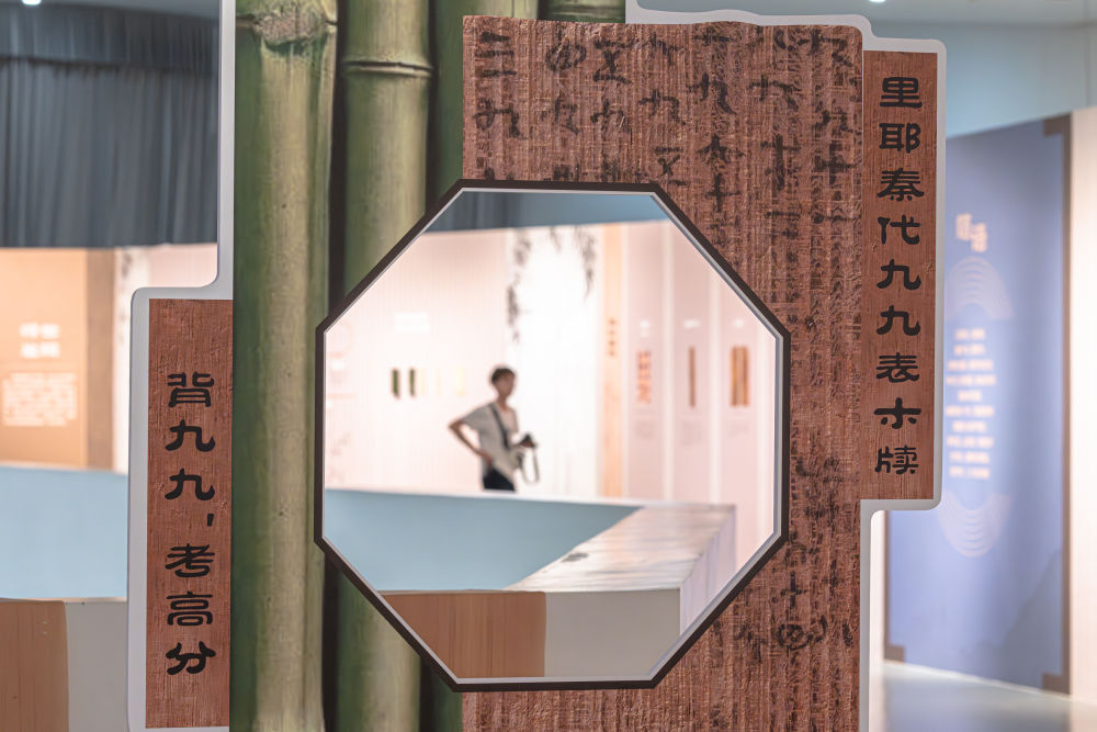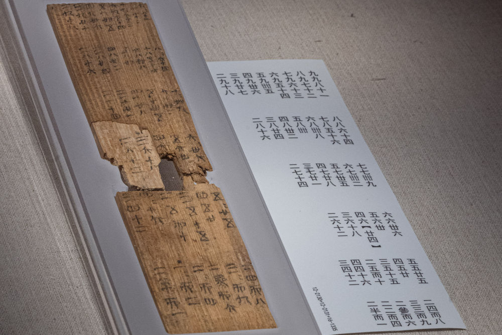 ↑ 6月6日拍摄的展出的里耶秦简《九九表》。