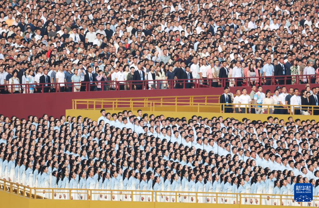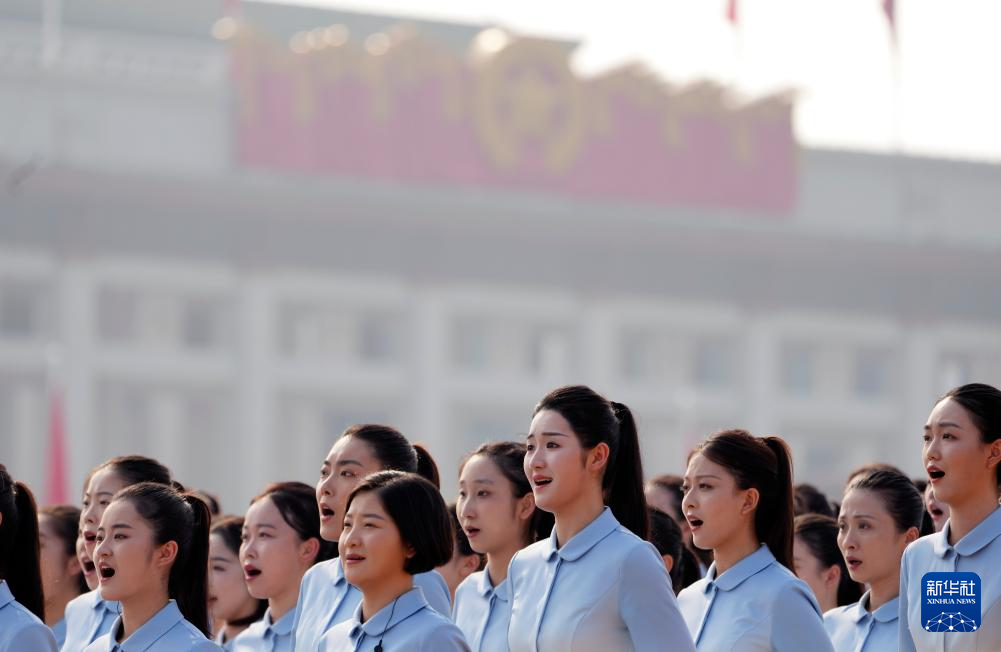 9月3日,纪念中国人民抗日战争暨世界反法西斯战争胜利80周年大会在北京天安门广场隆重举行。这是合唱团在演唱。新华社记者 李鑫 摄