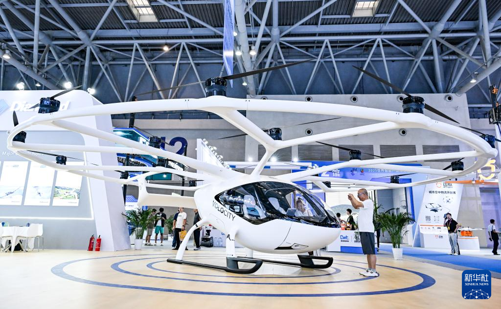 9月5日,观众在2025世界智能产业博览会上参观电动垂直起降飞行器。新华社记者 王全超 摄