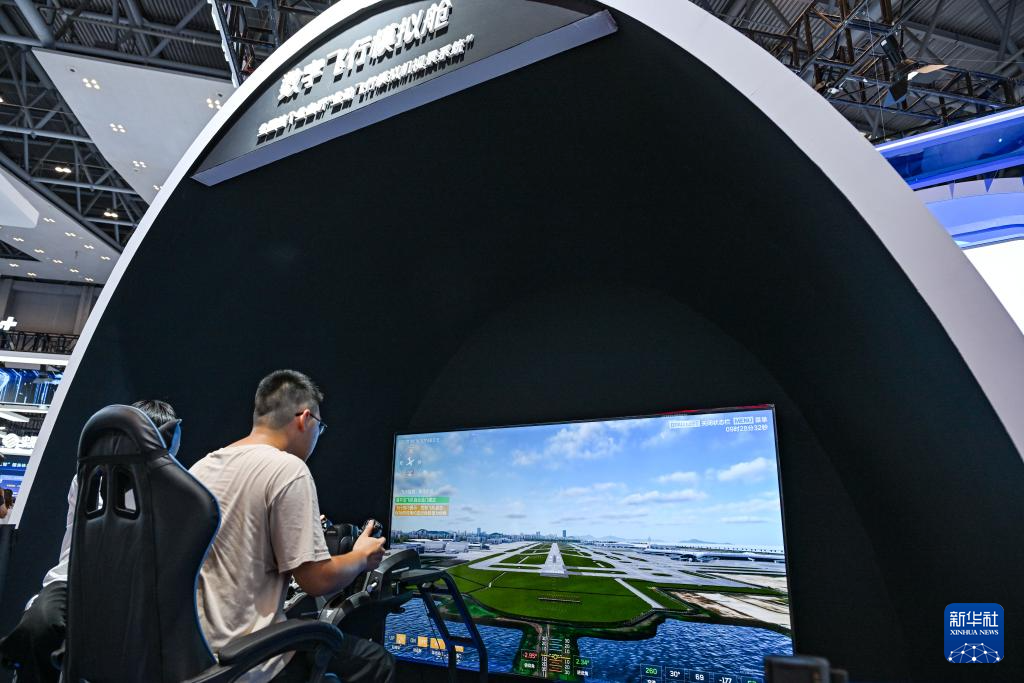 9月5日,观众在2025世界智能产业博览会上体验“数字飞行模拟舱”。新华社记者 王全超 摄