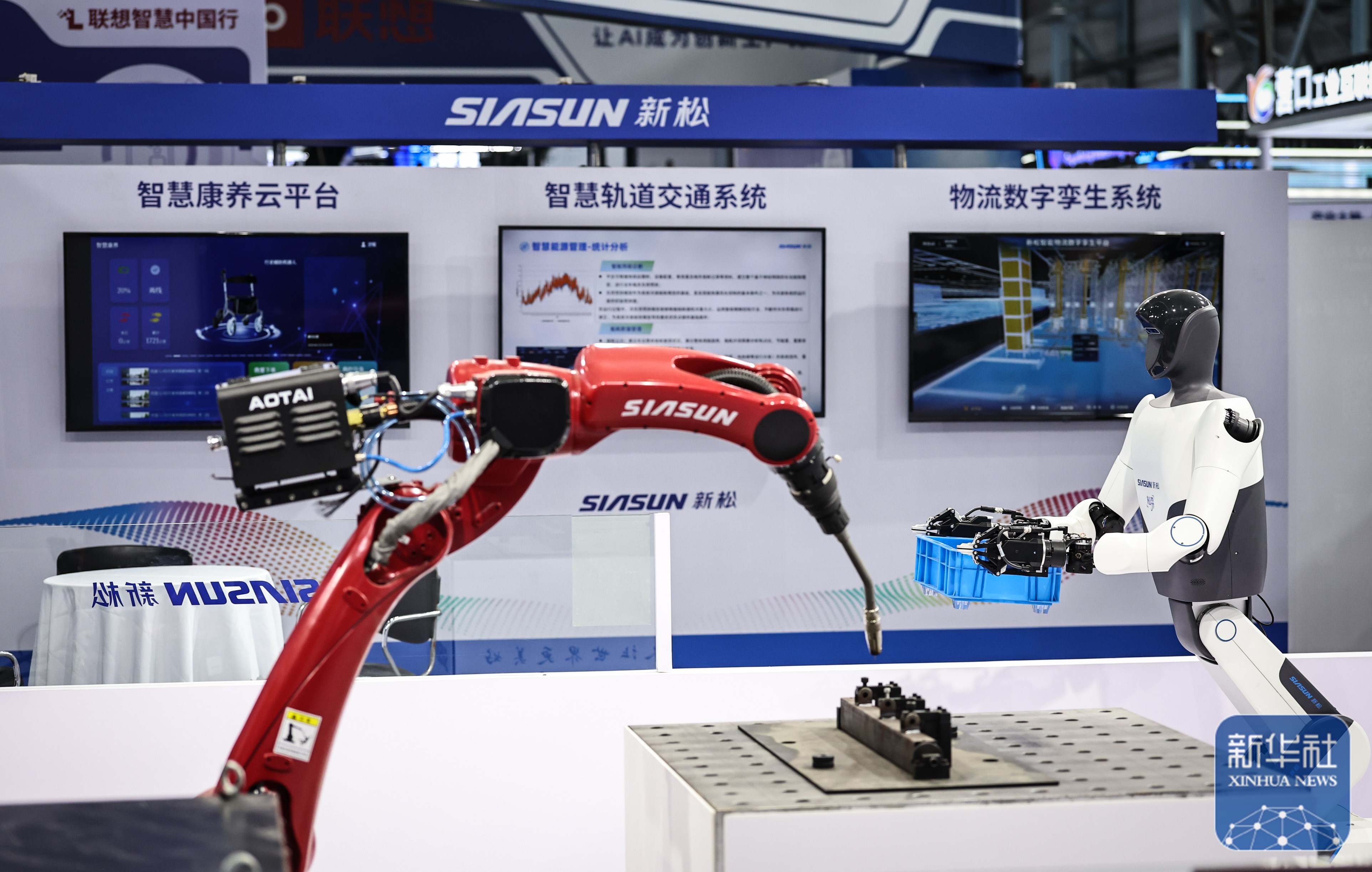↑ 9月6日在2025全球工业互联网大会展览区展示的工业机器人。新华社记者 潘昱龙 摄
