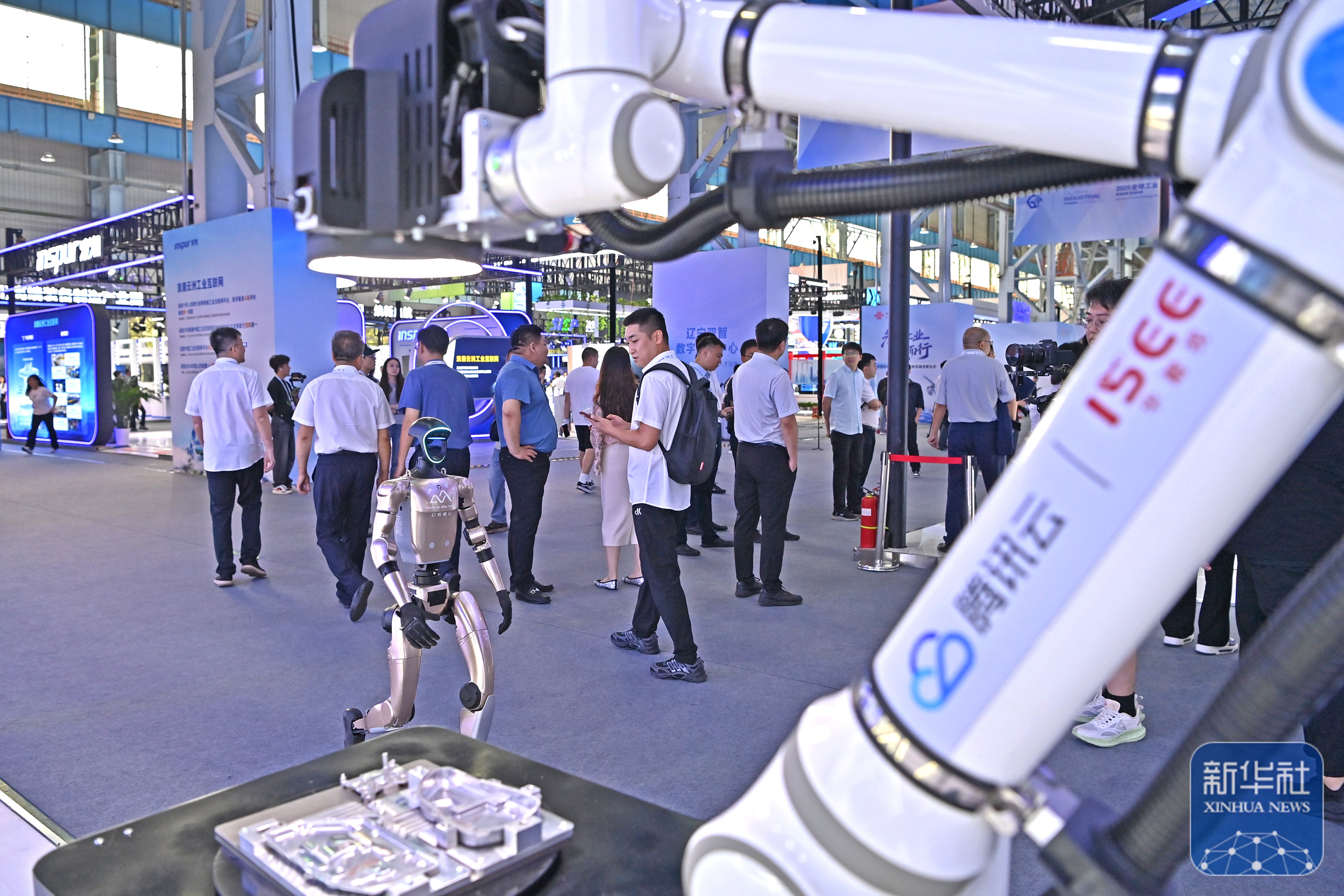 ↑ 9月6日在2025全球工业互联网大会展览区展示的机器人。新华社记者 潘昱龙 摄