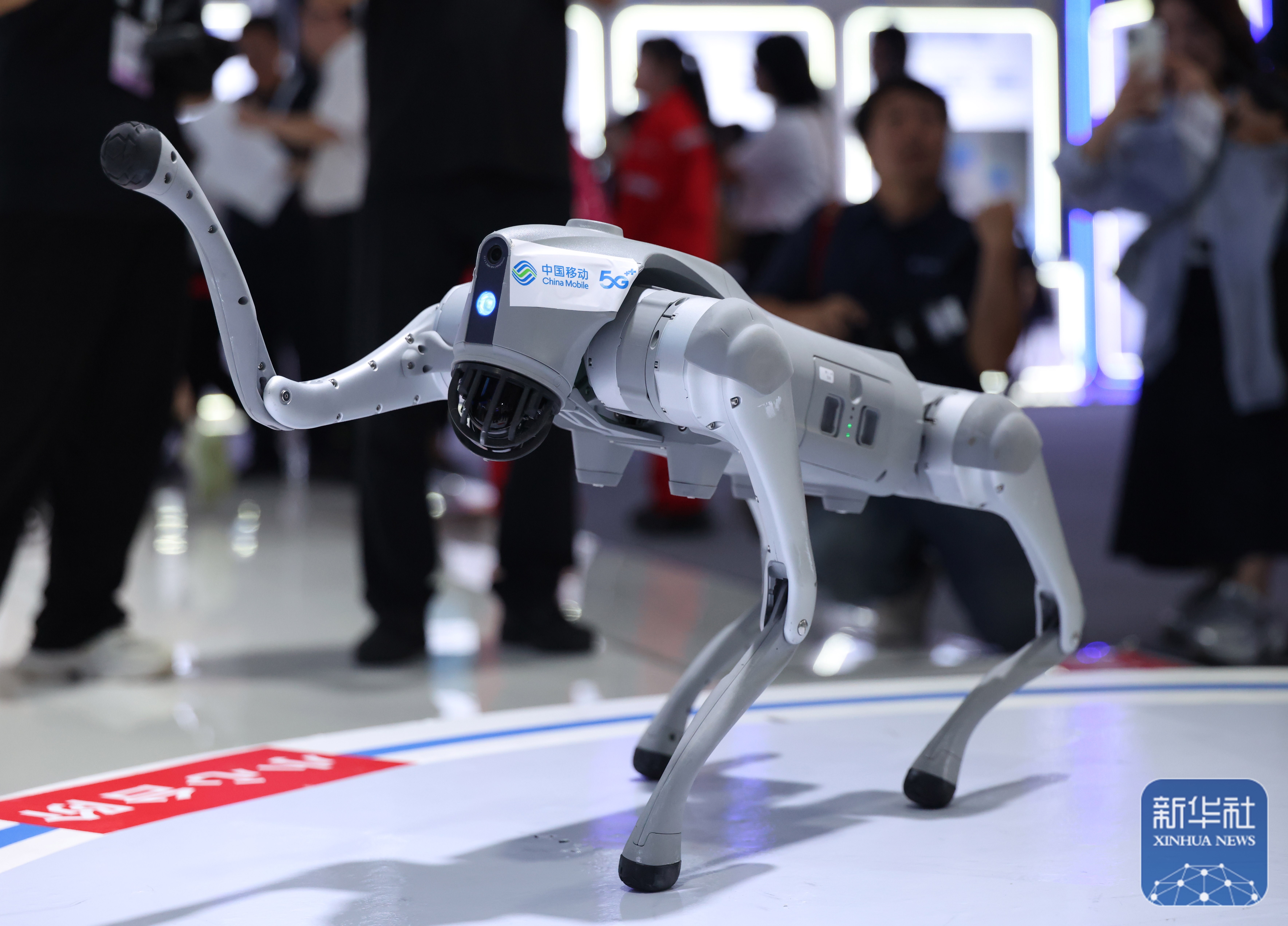 ↑ 这是9月6日在2025全球工业互联网大会展览区展示的机器狗。新华社记者 杨青 摄