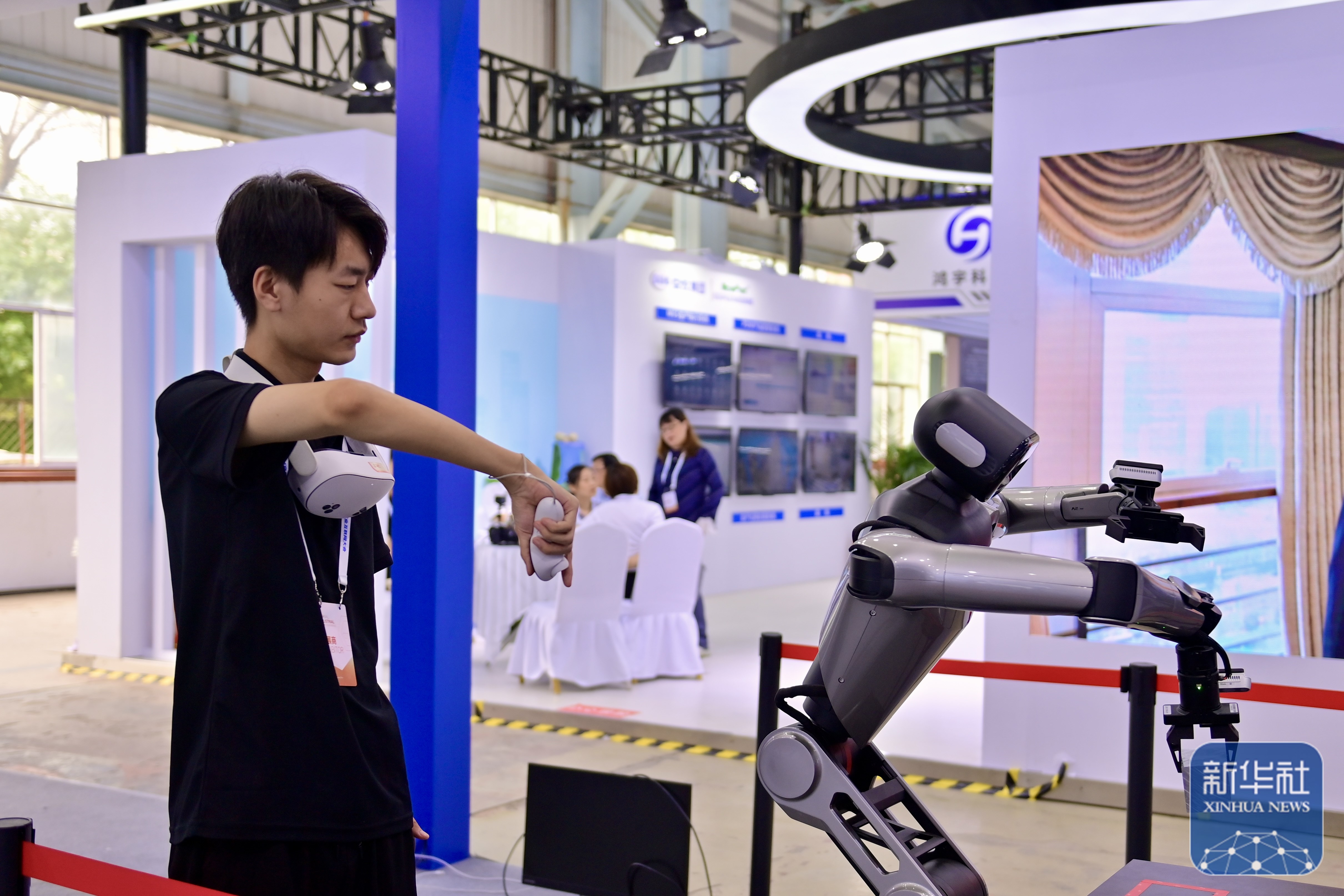 ↑ 9月6日,在2025全球工业互联网大会展览区,工作人员在演示具身智能操作系统。新华社发(王玉言 摄)