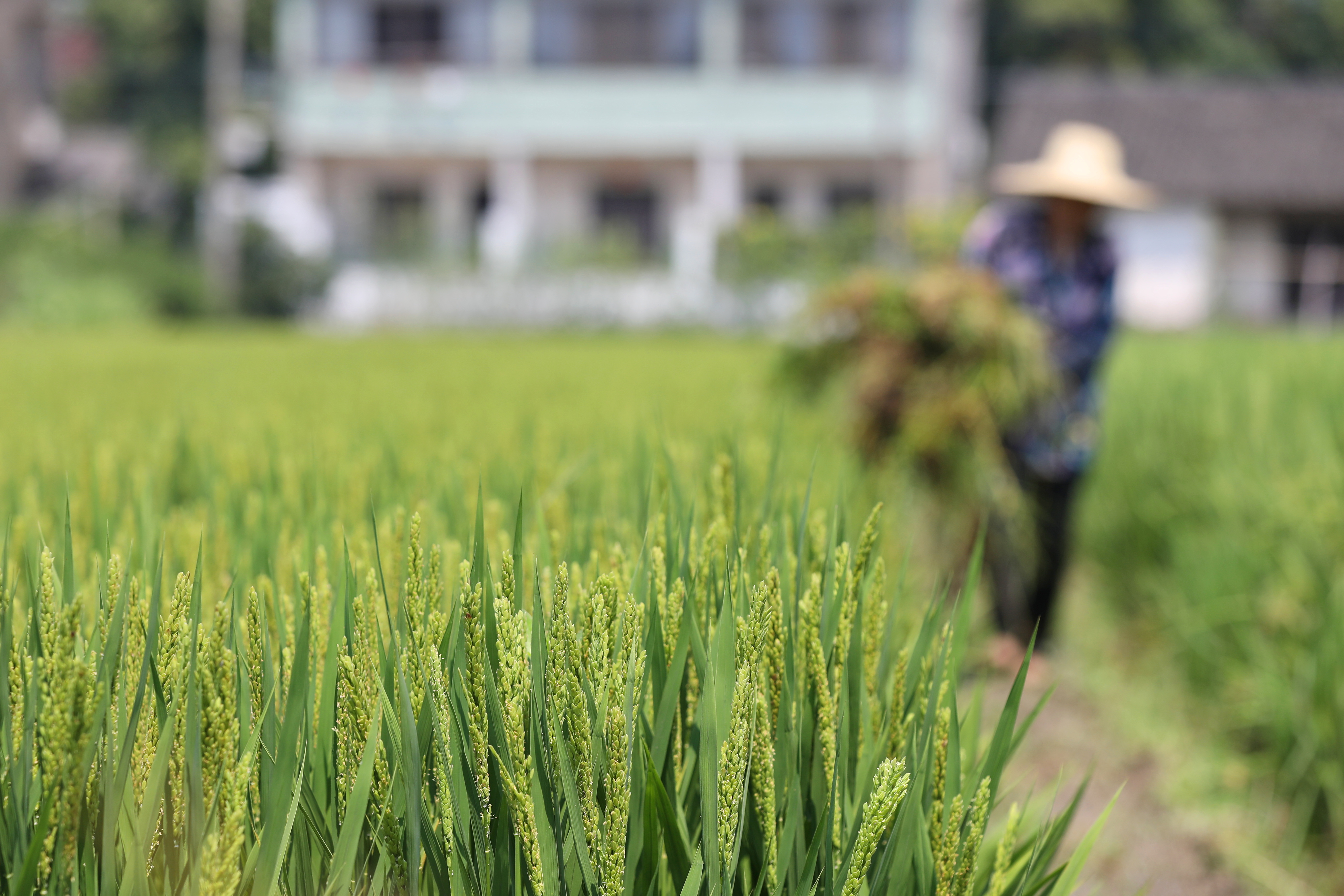 ↑ 9月6日,农民在浙江省嘉兴市南湖区凤桥镇永红村一处稻田清理野草。新华社发(金鹏摄)