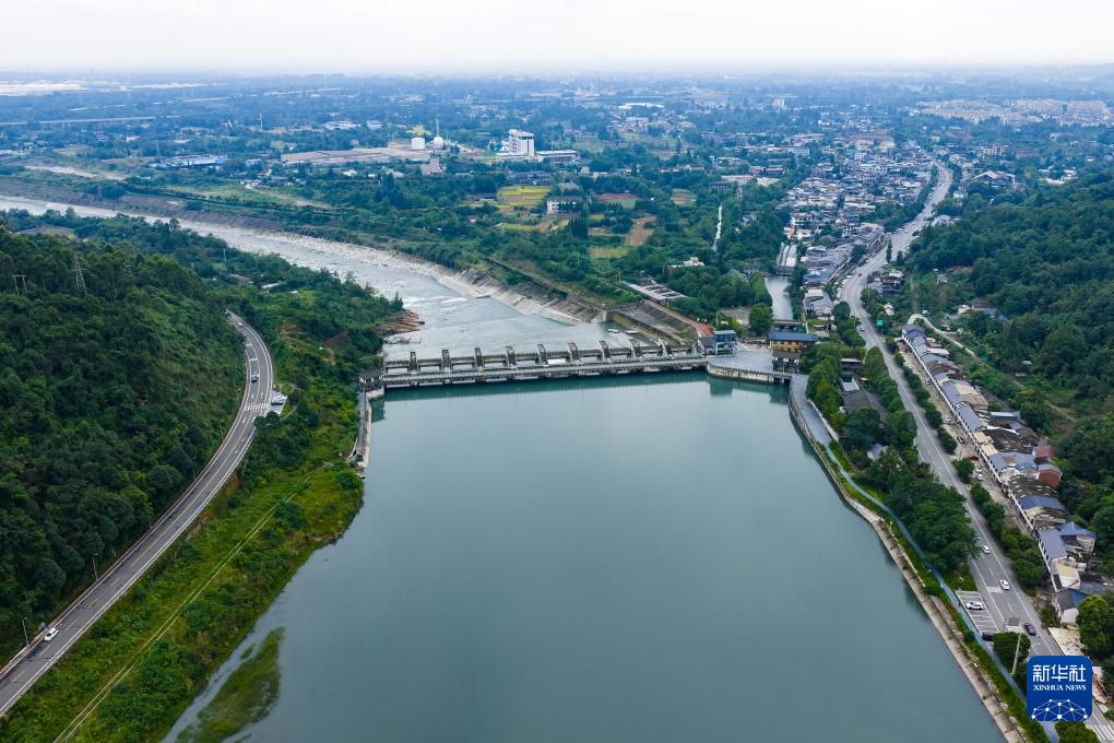 9月10日拍摄的四川彭州湔江堰(无人机照片)。新华社发(张勇 摄)