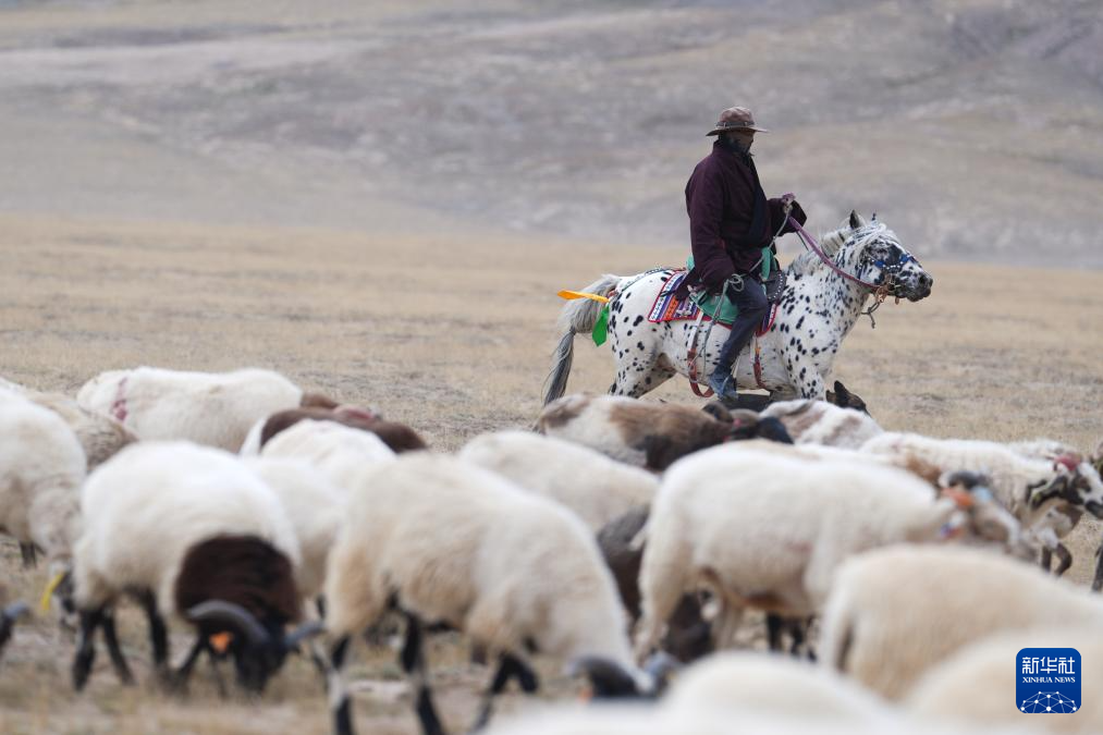 9月9日,在青海省海西蒙古族藏族自治州都兰县,一名牧民在转场途中。新华社记者 齐芷玥 摄
