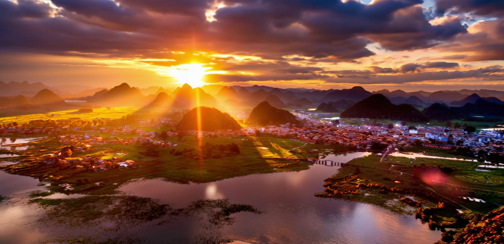 壮美如斯!“天眼”看普者黑山水田园风景如画
