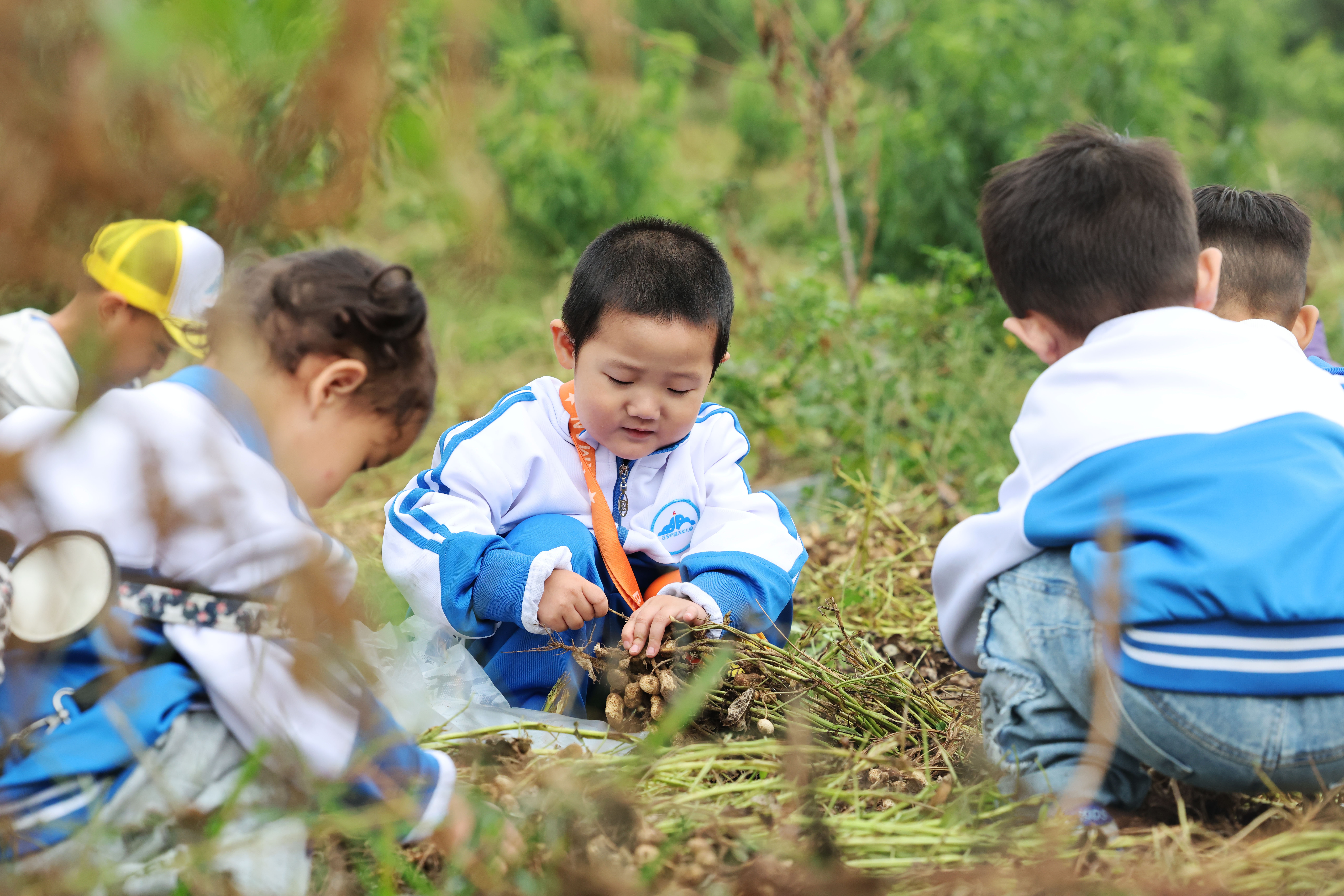 ↑9月23日,河北省迁安市组织150余名幼儿园儿童来到亚滦湾农业公园开展研学活动。这是小朋友在亚滦湾农业公园采摘花生。新华社记者 卢烨 摄