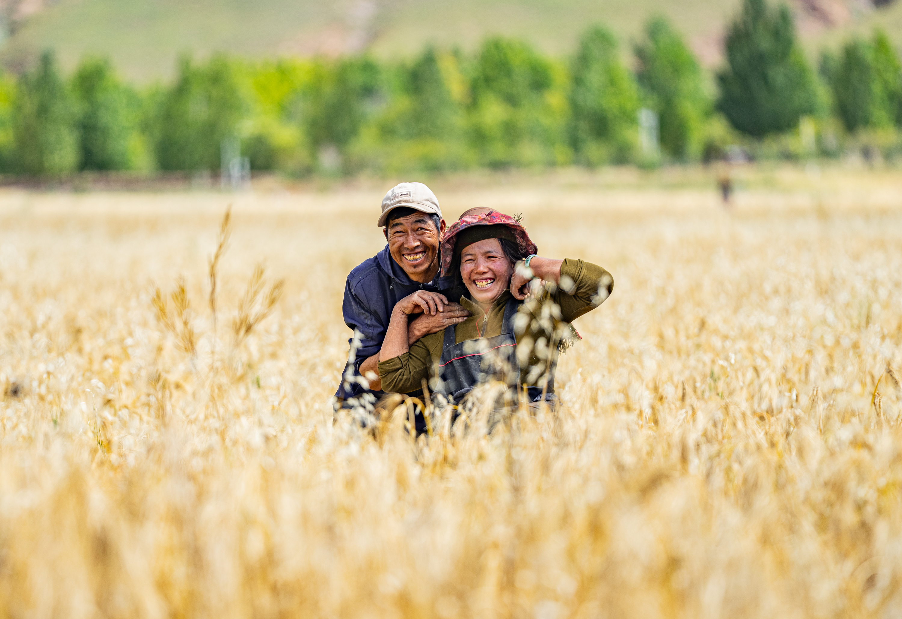 ↑这是西藏拉萨市林周县松盘乡岗巴村农民喜迎丰收的笑脸(9月23日摄)。新华社记者 丁增尼达 摄