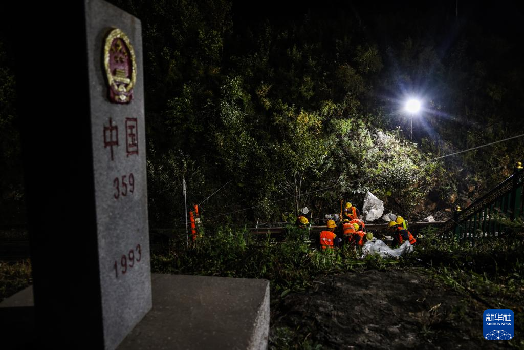 9月26日,施工人员在国境线附近连接新线钢轨。新华社发(曲艺伟摄)