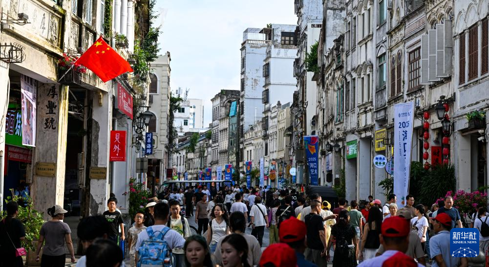 10月1日,游客在海口骑楼老街游览。新华社记者 杨冠宇 摄