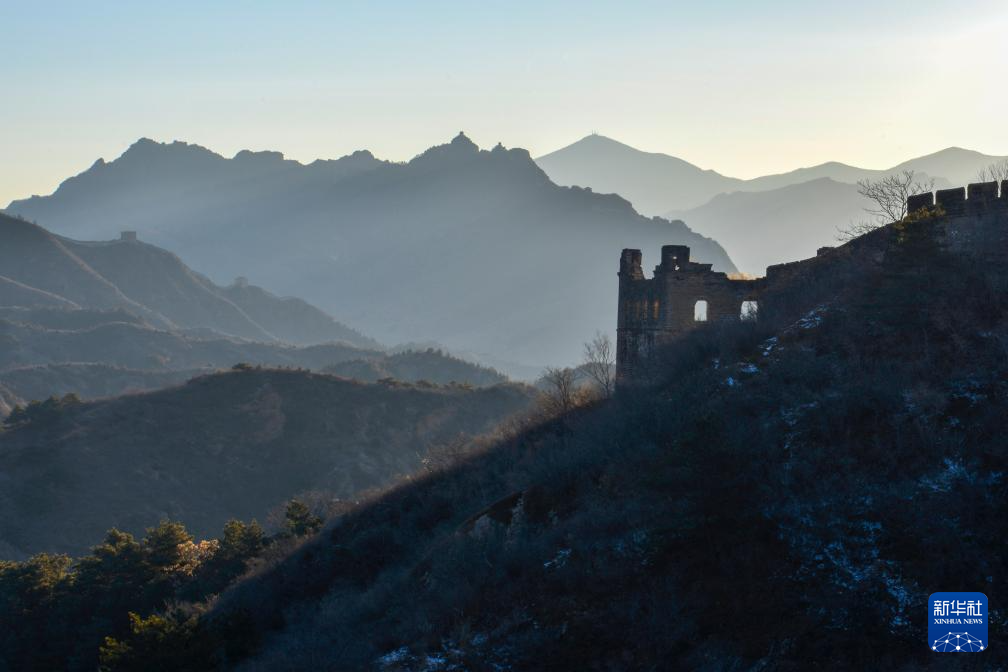 这是1月11日在河北省承德市滦平县拍摄的金山岭长城晨景。新华社发(周万平摄)