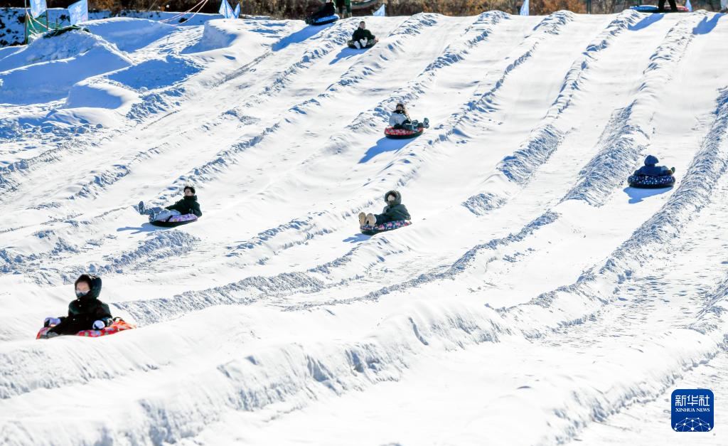 1月11日,游客在河北省唐山市迁西县凤凰山景区冰雪乐园坐雪圈滑雪。新华社发(刘满仓摄)