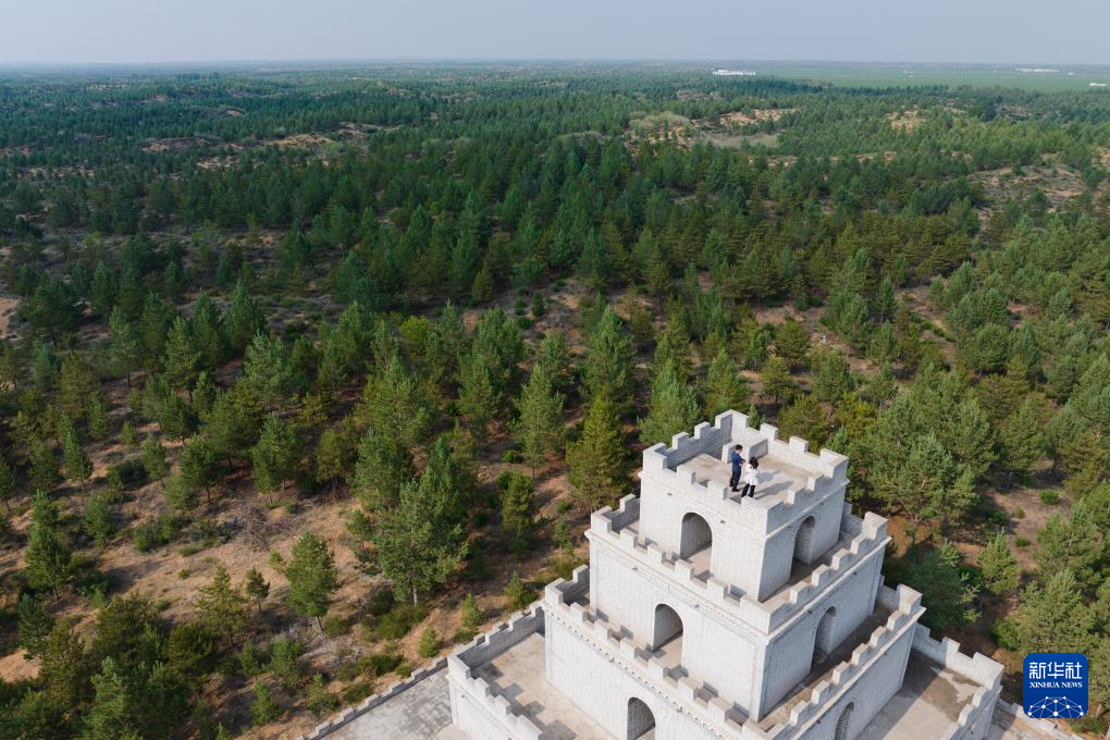 这是陕西榆林神木市毛乌素治沙造林基地内建设的人工林(2024年6月5日摄,无人机照片)。新华社记者 邵瑞 摄