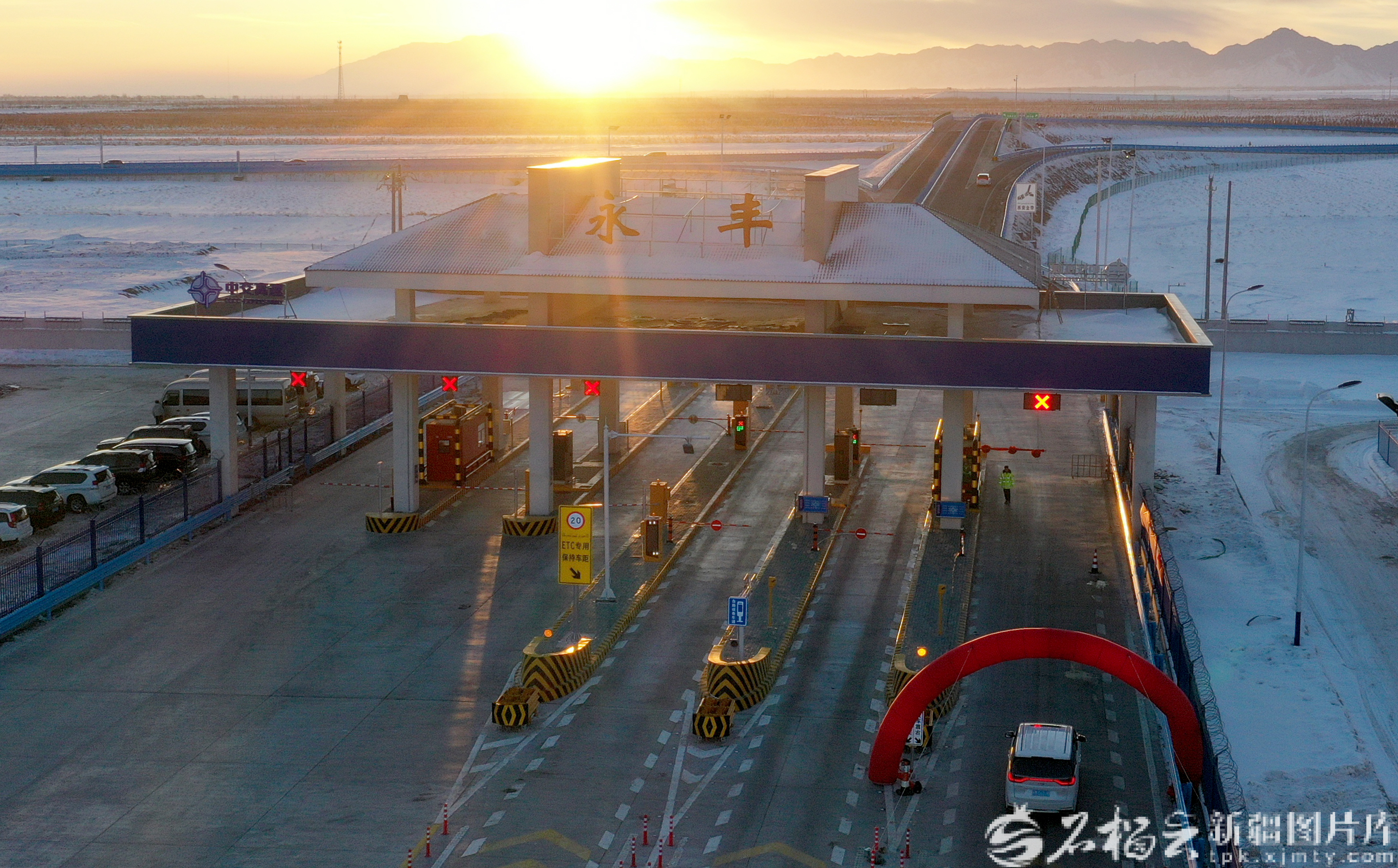 12月26日,无人机航拍的乌尉高速公路永丰匝道收费站。天山网-新疆日报记者 韩亮摄