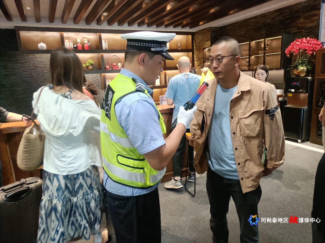 “隔夜酒”别侥幸!阿勒泰交警进酒店检测+贴标语双重提醒