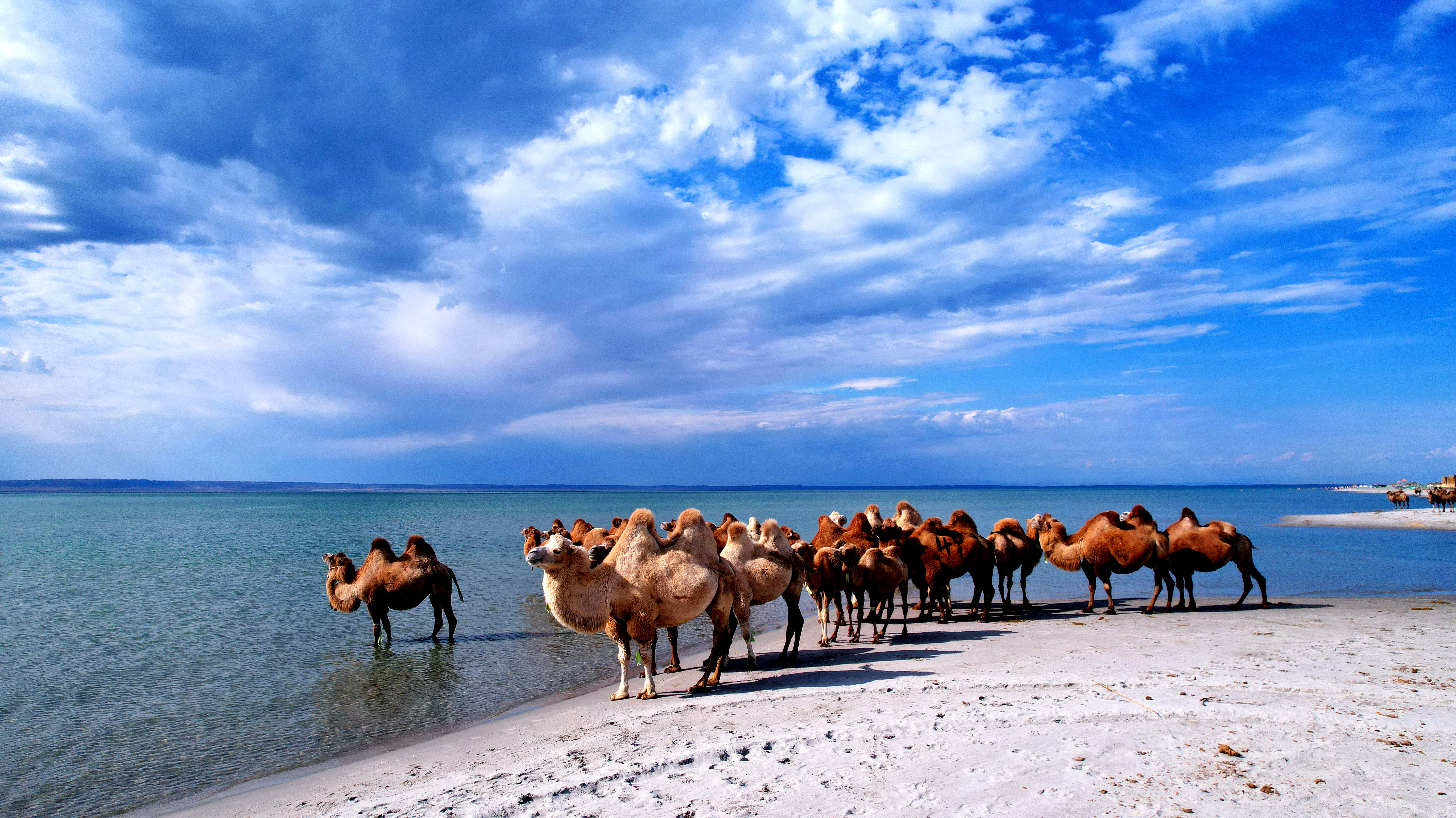 水岸驼影映碧空