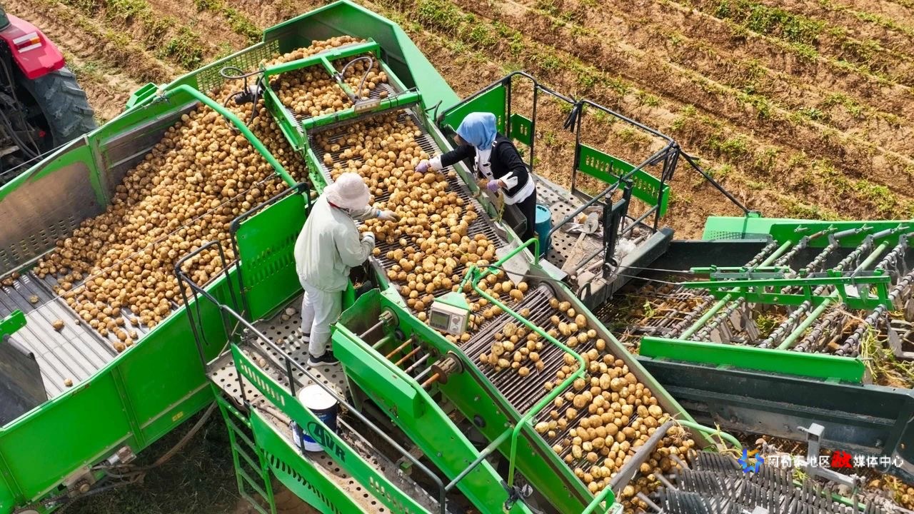 同样的科技场景也出现在巴勒塔村马铃薯基地,收获机穿梭田间,一个个饱满的马铃薯被快速采收;而萨尔塔克太村的12万亩食葵已化作金色花海,这背后离不开春夏时节县技工学校开展的“食葵高产栽培”系统化培训,让“科技范儿”助力丰产。