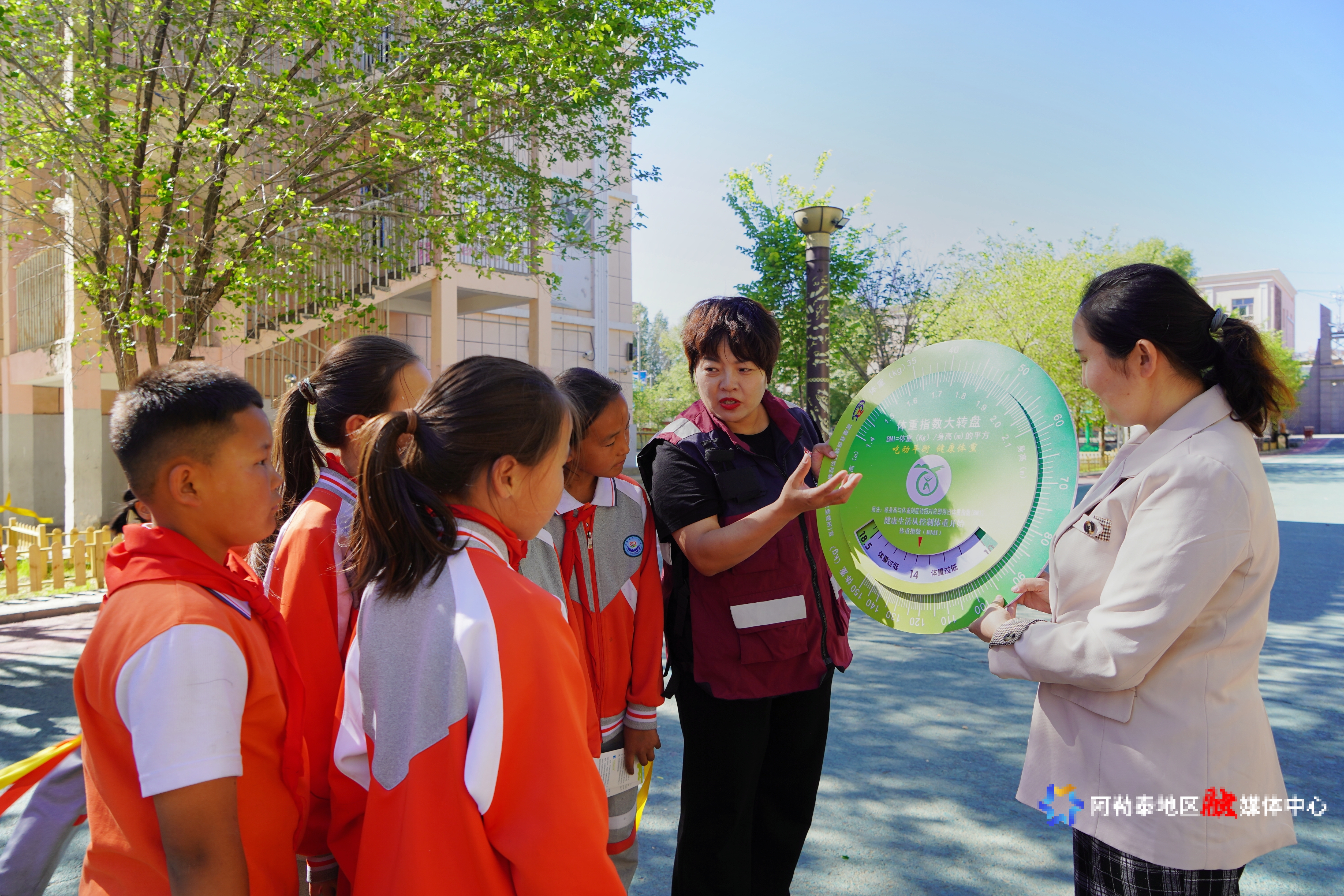 富蕴县第一小学教师对现场学生普及了健康体重的标准、超重肥胖危害及科学管理方法。