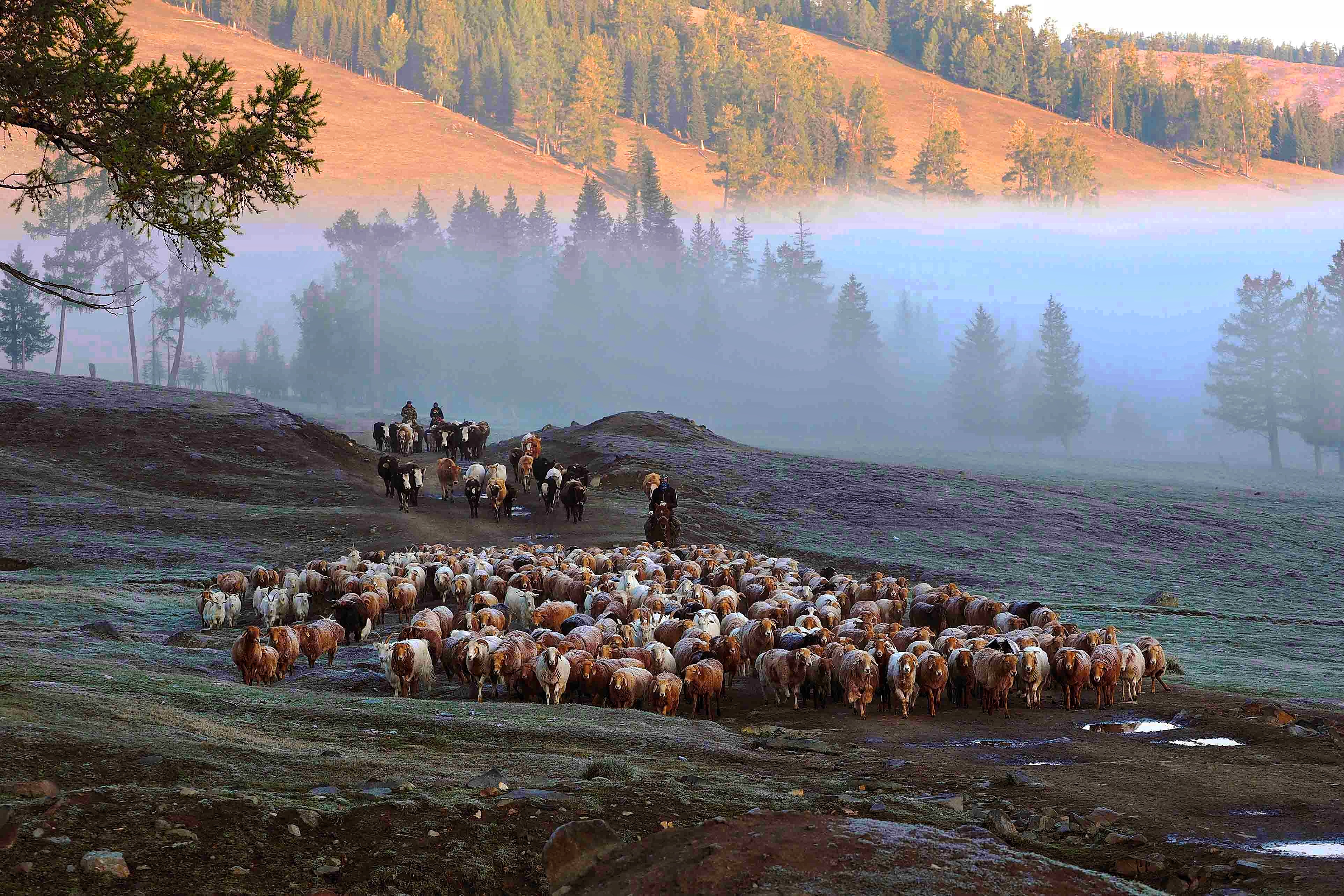 阿勒泰羊的优良特质源于其基因。作为肉脂兼用型良种,它体格健硕,公羊多具螺旋形大角,母羊亦多有角;背腰平直,胸深宽阔,股部肌肉丰满,腿高而稳健。其生命力顽强,耐粗饲、抗严寒、抗逆性强,即便在四季转场、终年放牧中仍能高效抓膘,因每年徒步转场500—800公里,被誉为“千里羊”,是世界上游牧路途最远的羊,转场的跋涉也炼就了它紧实的肉质。