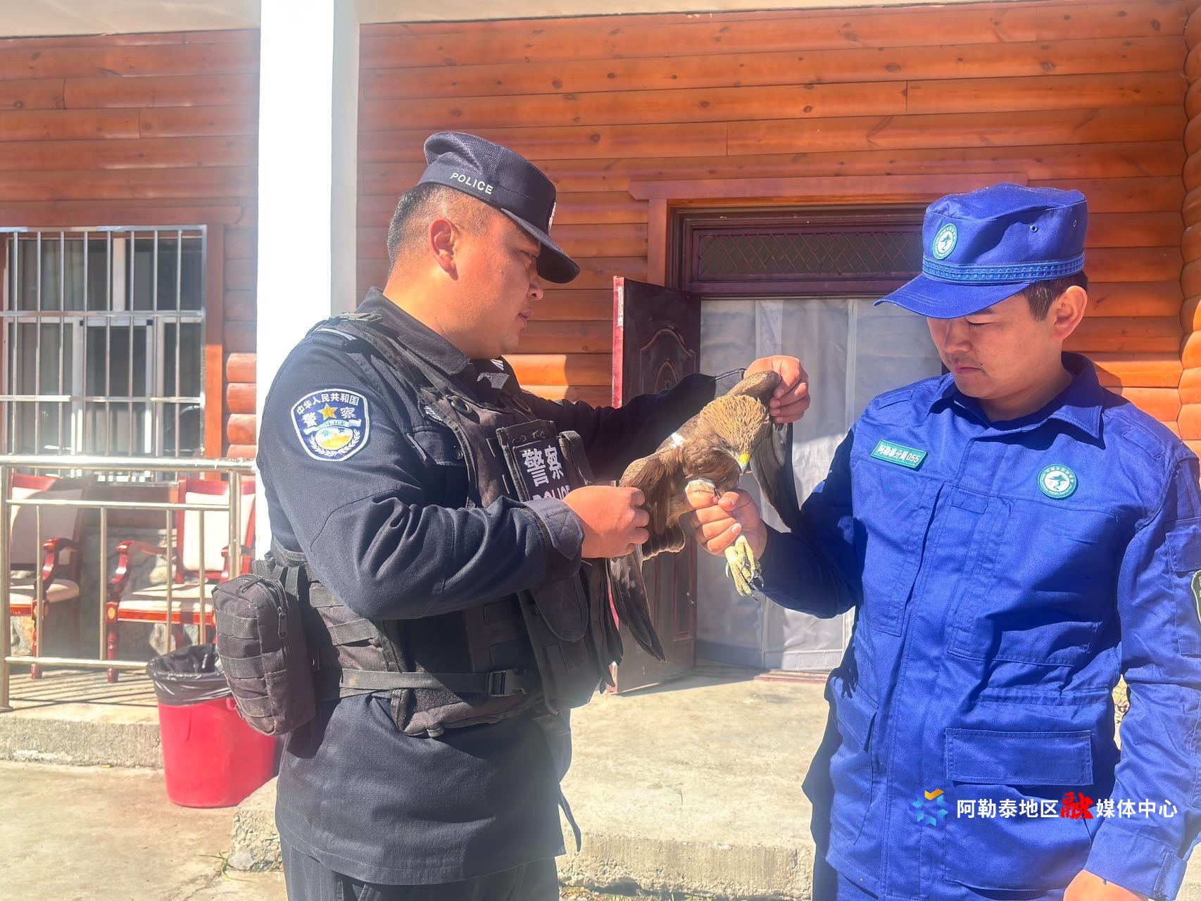 阿勒泰新闻网-阿勒泰地区融媒体中心(记者 古扎丽·阿布都热西提)9月16日,阿勒泰边境管理支队冲乎尔边境派出所接到游客报警,称其在托勒海特草原发现一只疑似受伤的禽类。