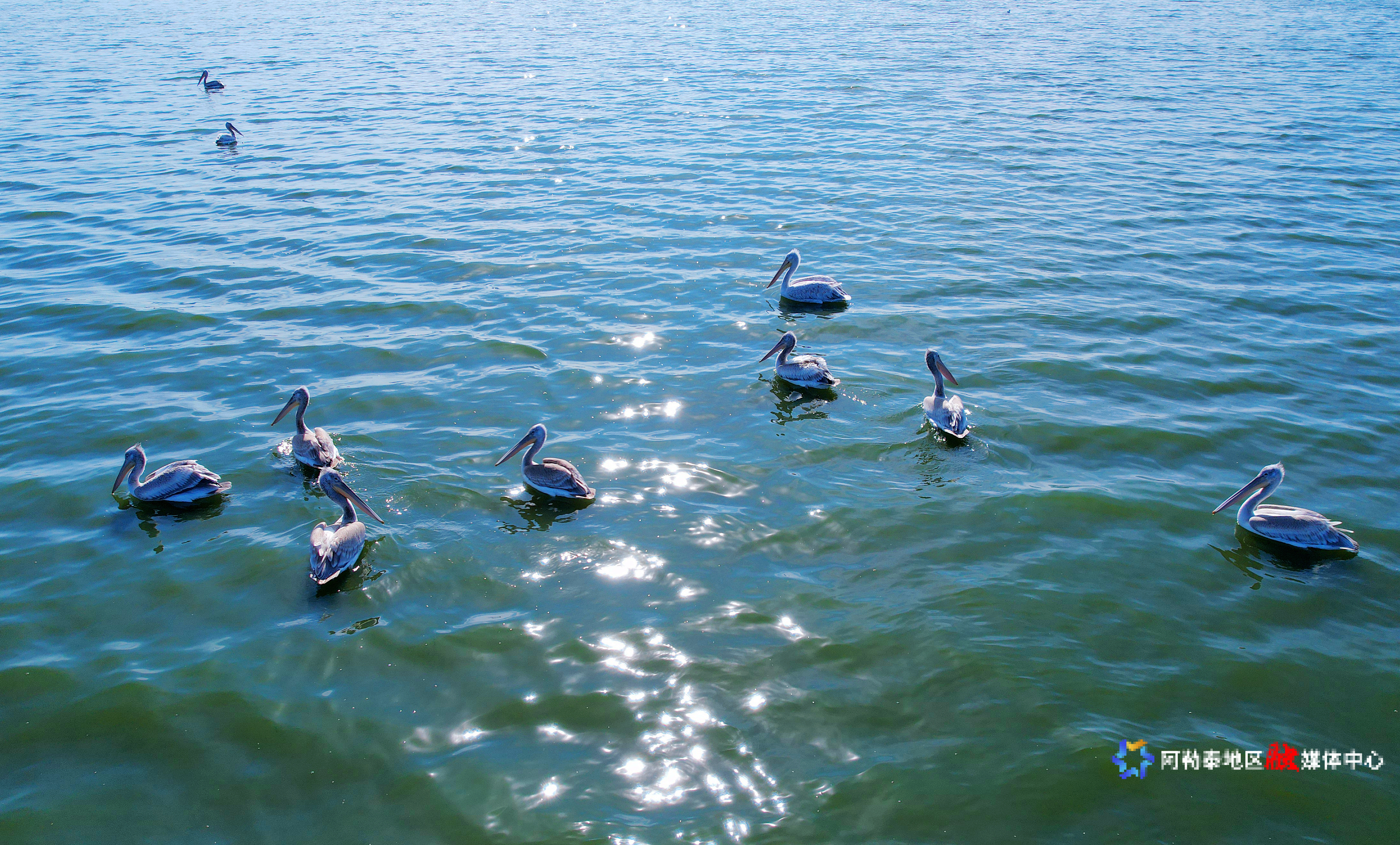 阿勒泰新闻网-阿勒泰地区融媒体中心(记者 阿尔达克·拜斯汗)9月18日,国家一级重点保护野生动物卷羽鹈鹕在乌伦古湖国家湿地公园觅食嬉戏。
