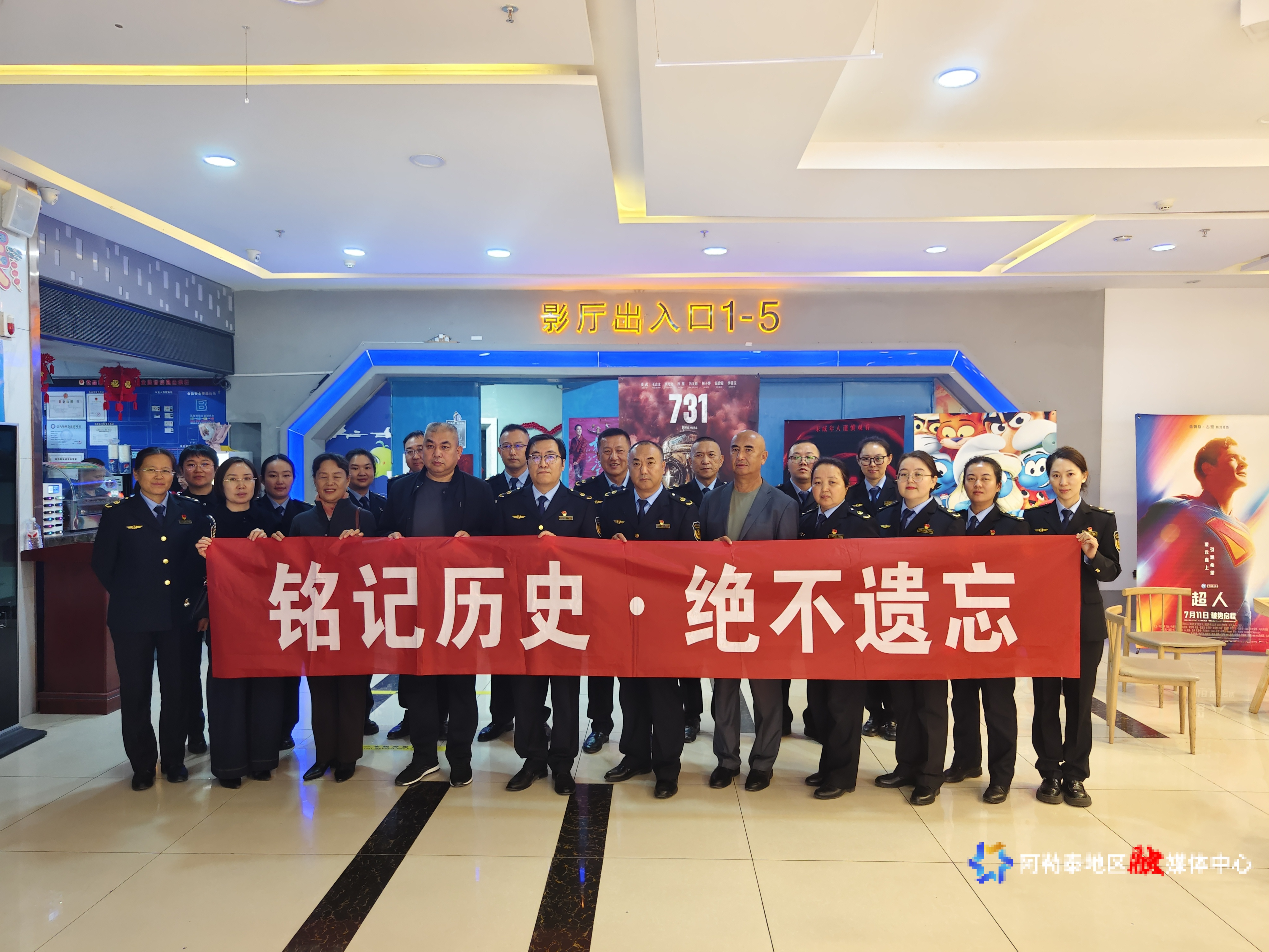 北屯执法大队党支部与联建社区北屯镇胡杨社区党总支共同观看电影《731》。镜头下的苦难历史与先辈的抗争历程,让在场党员干部深刻体会到和平生活的来之不易。
