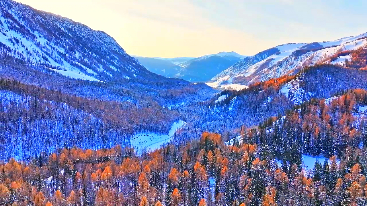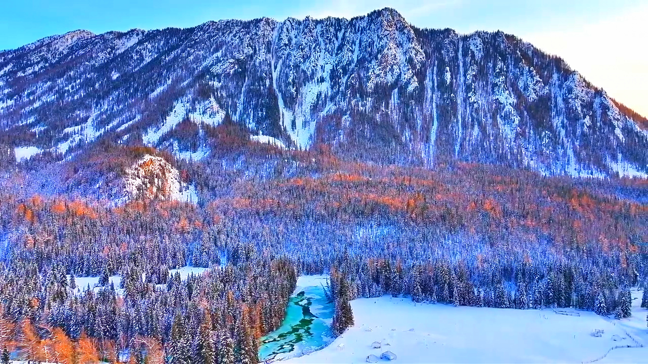 雪山为幕、彩林作毯,冰河绕出独属阿禾的冬日曲线。