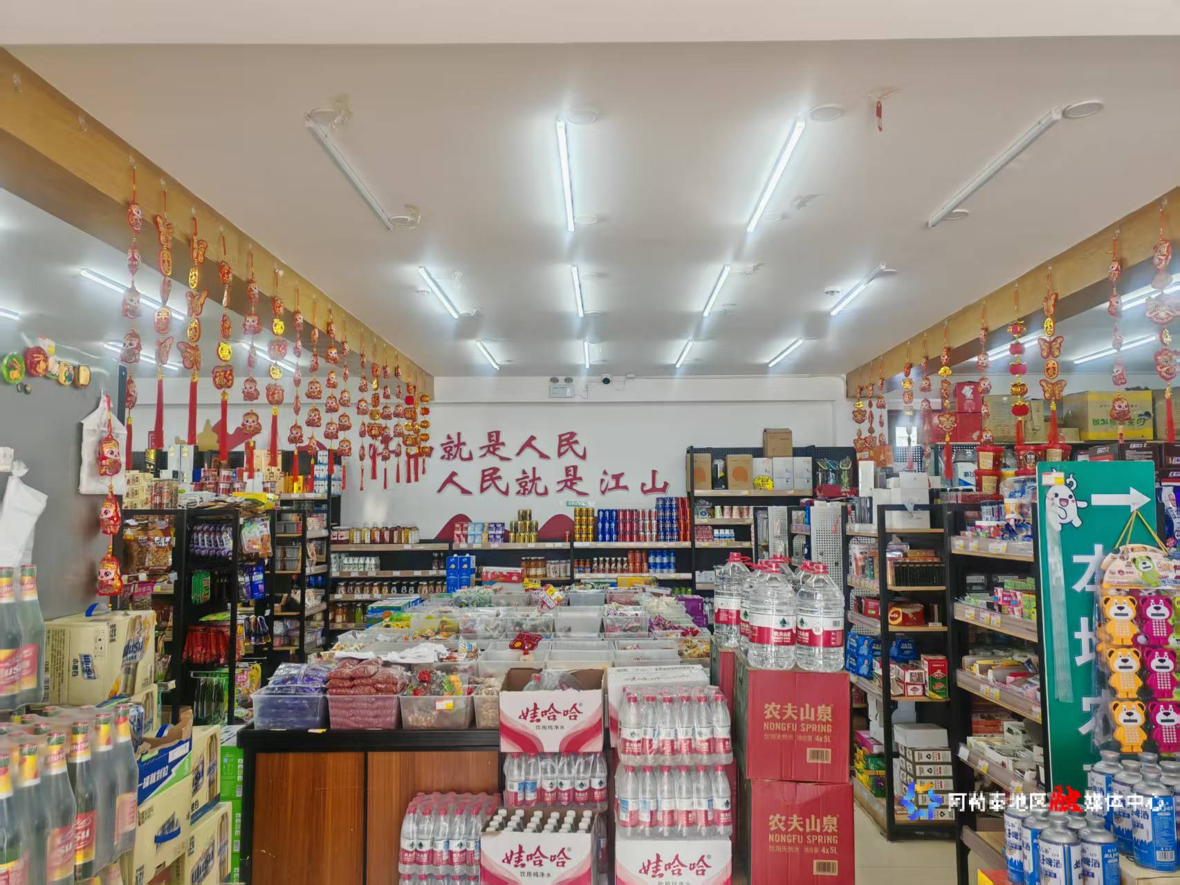 布尔津县禾木乡供销合作社平价超市内货品琳琅满目、摆放整齐。