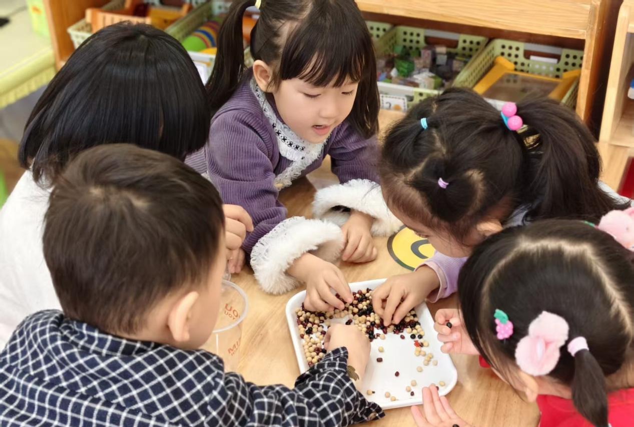 在老师的引导下,孩子们化身小小“春耕家”,用小手分辨、触摸、观察,感受种子的形态与力量。从选豆、泡豆到栽种、养护,每一个步骤都充满了好奇与专注,每一次触摸都饱含着对春天的喜爱。