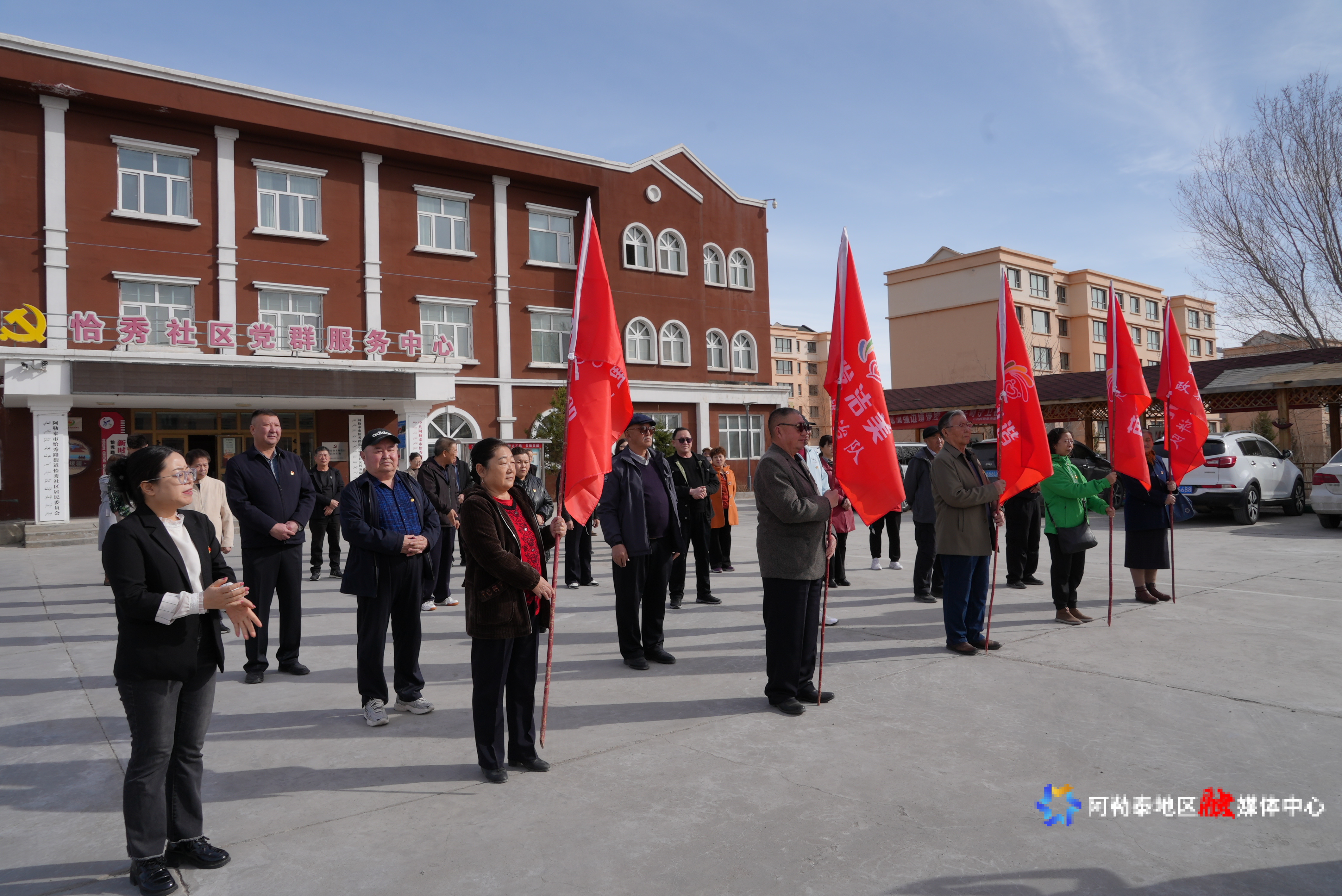 4月1日上午,阿勒泰市恰秀路街道恰秀社区举行银发先锋志愿服务队授旗仪式暨“三问于民”积分手册发放活动现场。