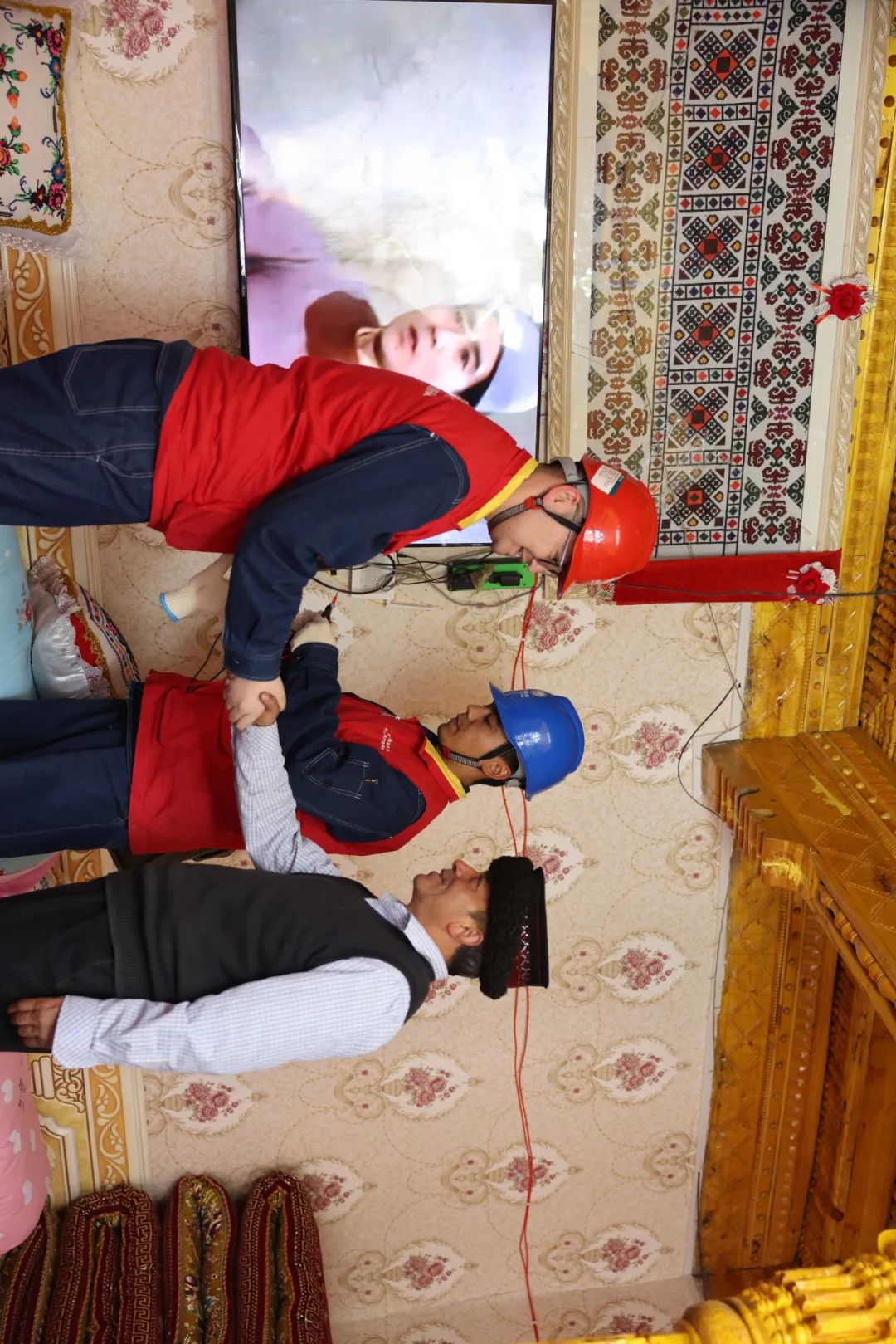 员工在旅游旺季期间来到阿克陶县塔尔乡百年古居民宿进行用电安全隐患排查。摄影师@刘学文