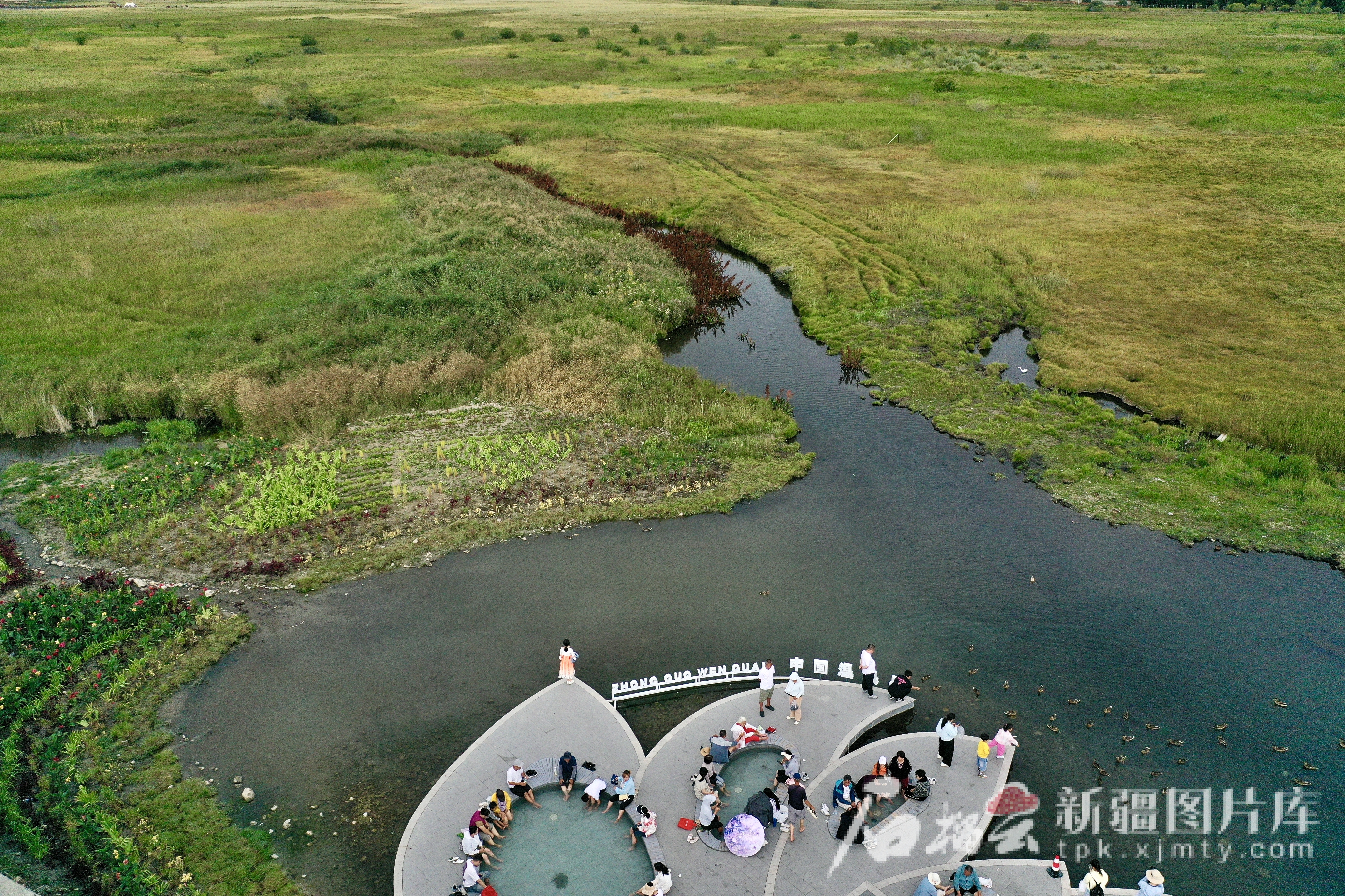 天山网-新疆日报讯(记者李瑞摄影报道)8月15日,“对口援疆 潮涌天山”主题采访活动成员来到温泉县。当天,记者走进温泉县博尔塔拉河国家湿地公园看到许多游客在露天温泉体验区泡脚。
