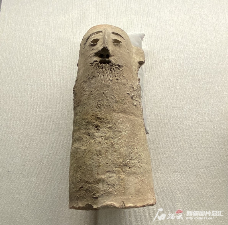 “载瞻载止——新疆考古百年”特展中的人面陶灯。天山网-新疆日报记者 赵梅 摄