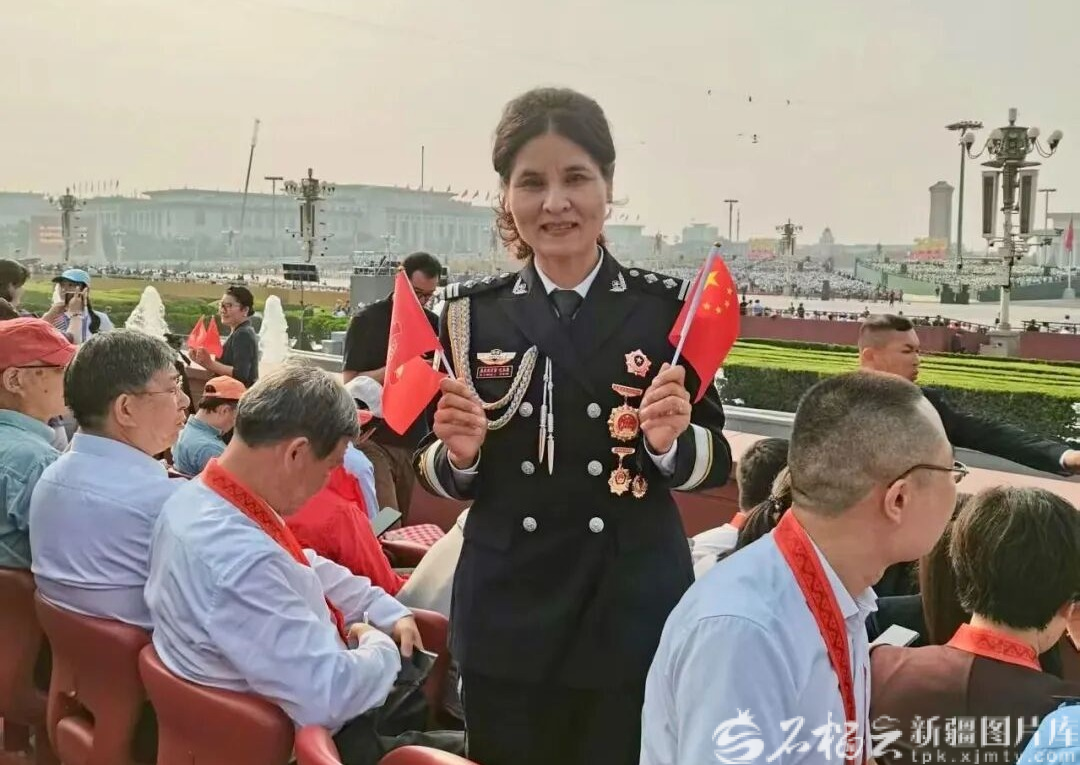 当天,新疆公安系统9名民警代表,应邀前往北京观礼。天安门广场上,他们身着庄严的警礼服,现场见证了大国重器的雄姿。认真聆听习近平总书记重要讲话,全国最美基层民警、昌吉回族自治州木垒哈萨克自治县公安局刑事侦查大队大队长香憬深受鼓舞,她表示,将以此次阅兵观礼为新起点,立足岗位,勇担使命,为全面建设更高水平的平安新疆、法治新疆贡献力量。