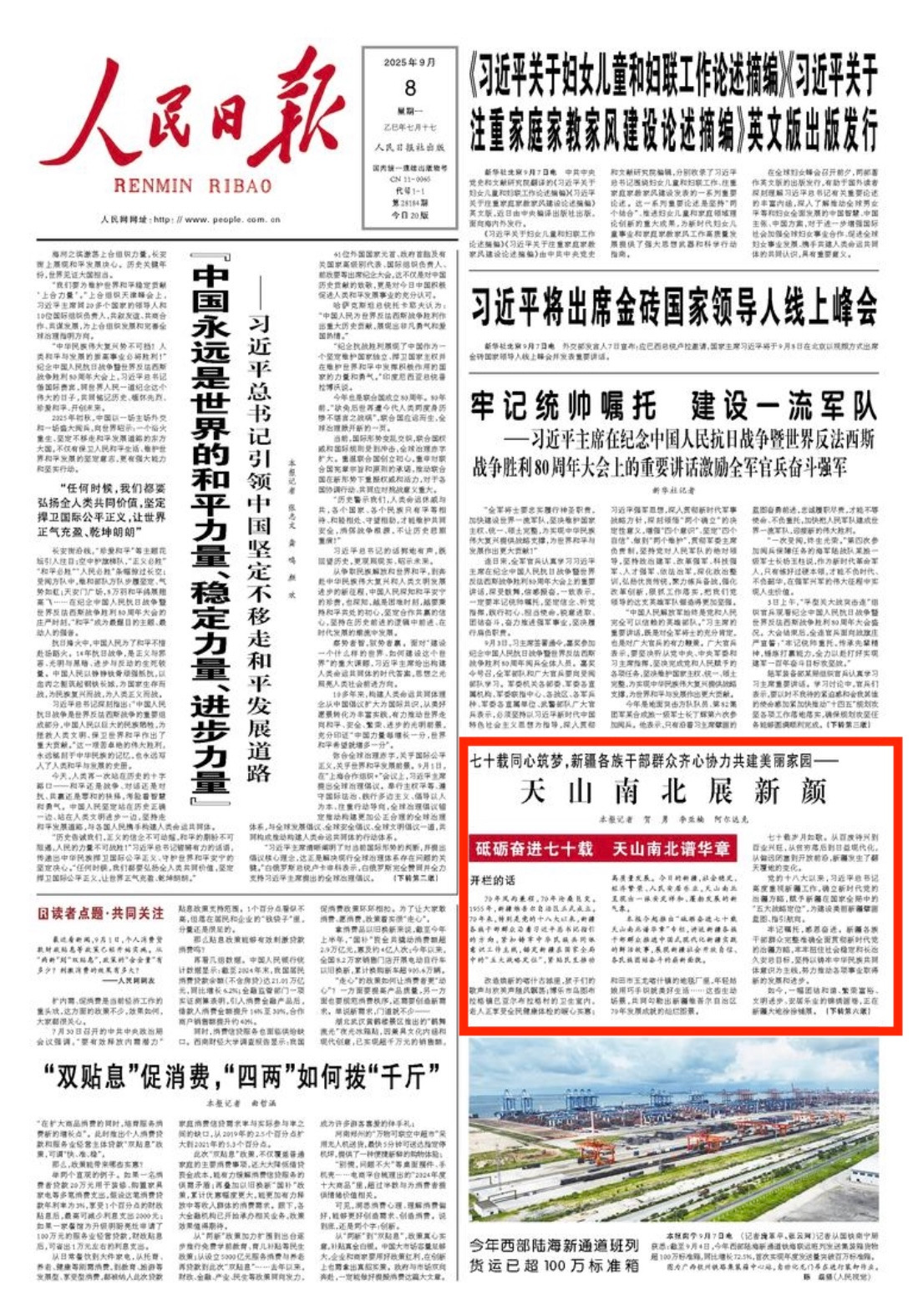 人民日报头版丨天山南北展新颜