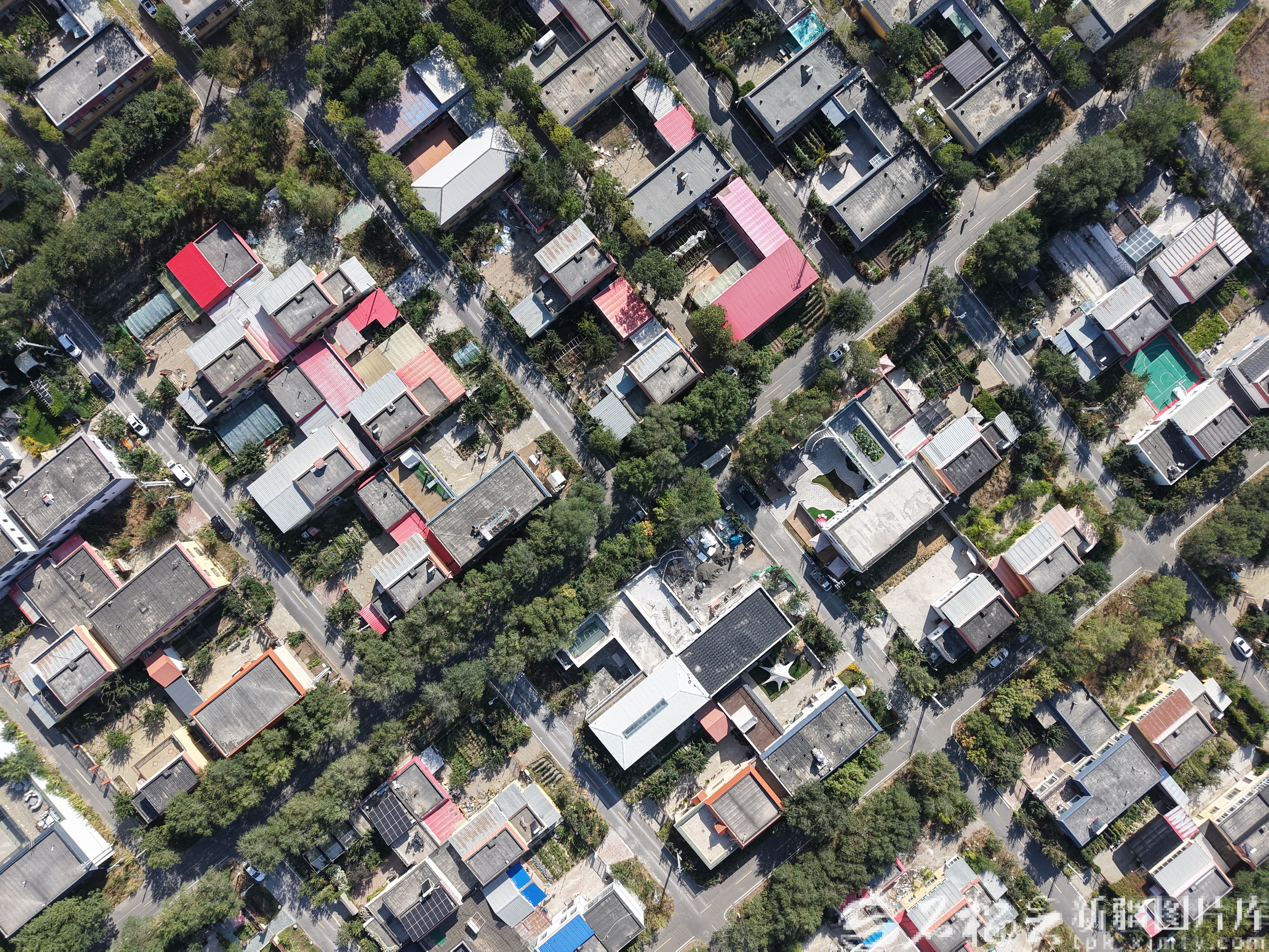 9月8日,俯瞰乌鲁木齐县水西沟镇平西梁村全景。