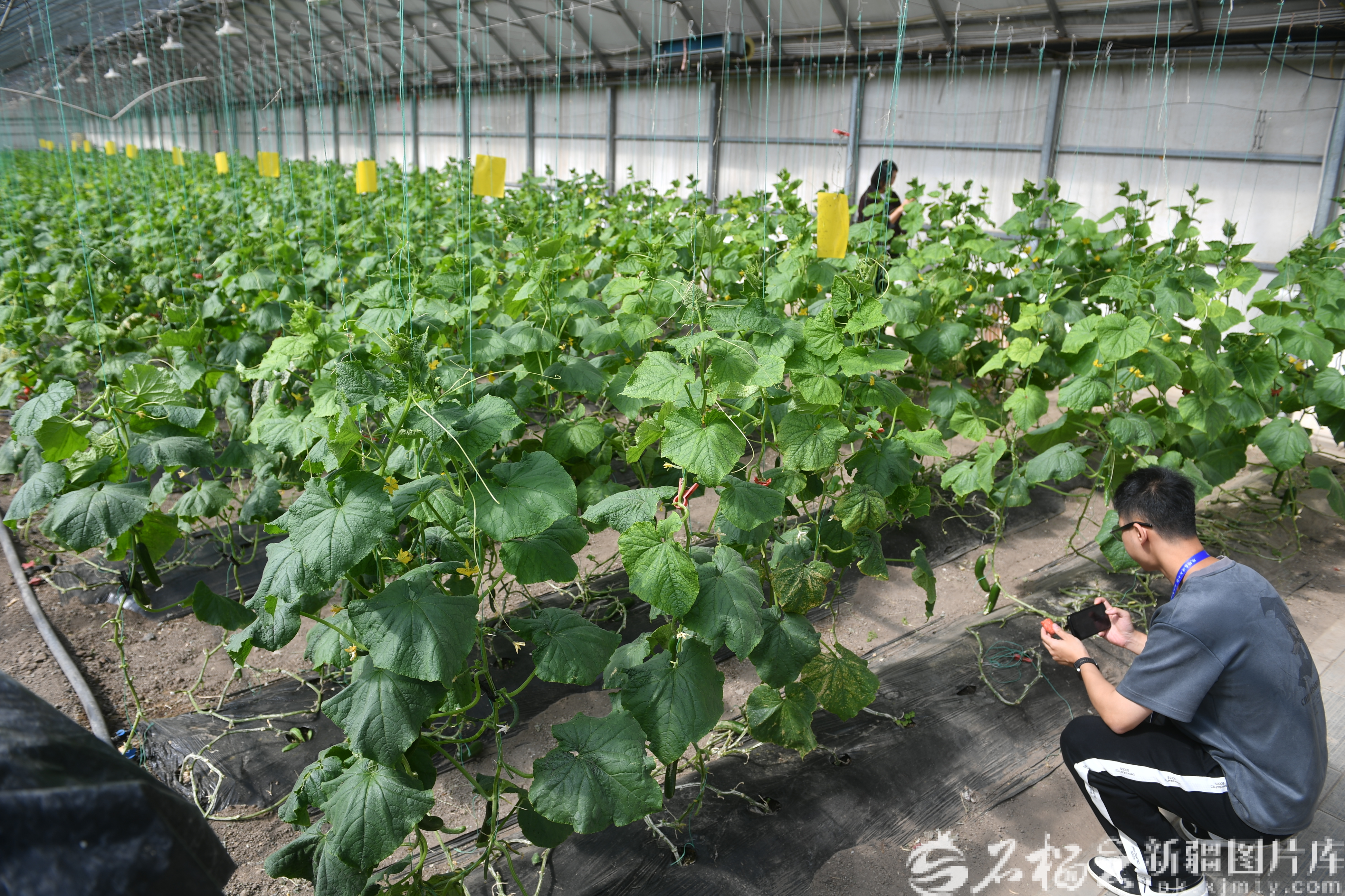 9月8日,采访团成员在平西梁村乌鲁木齐膳源生态农业有限公司大棚内拍摄。