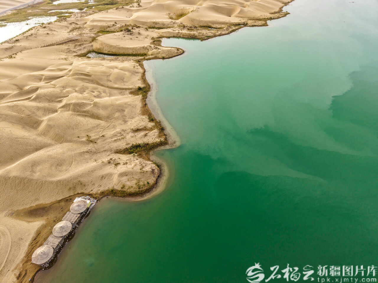 9月10日,航拍位于尉犁县墩阔坦乡的罗布人村寨景区美景。
