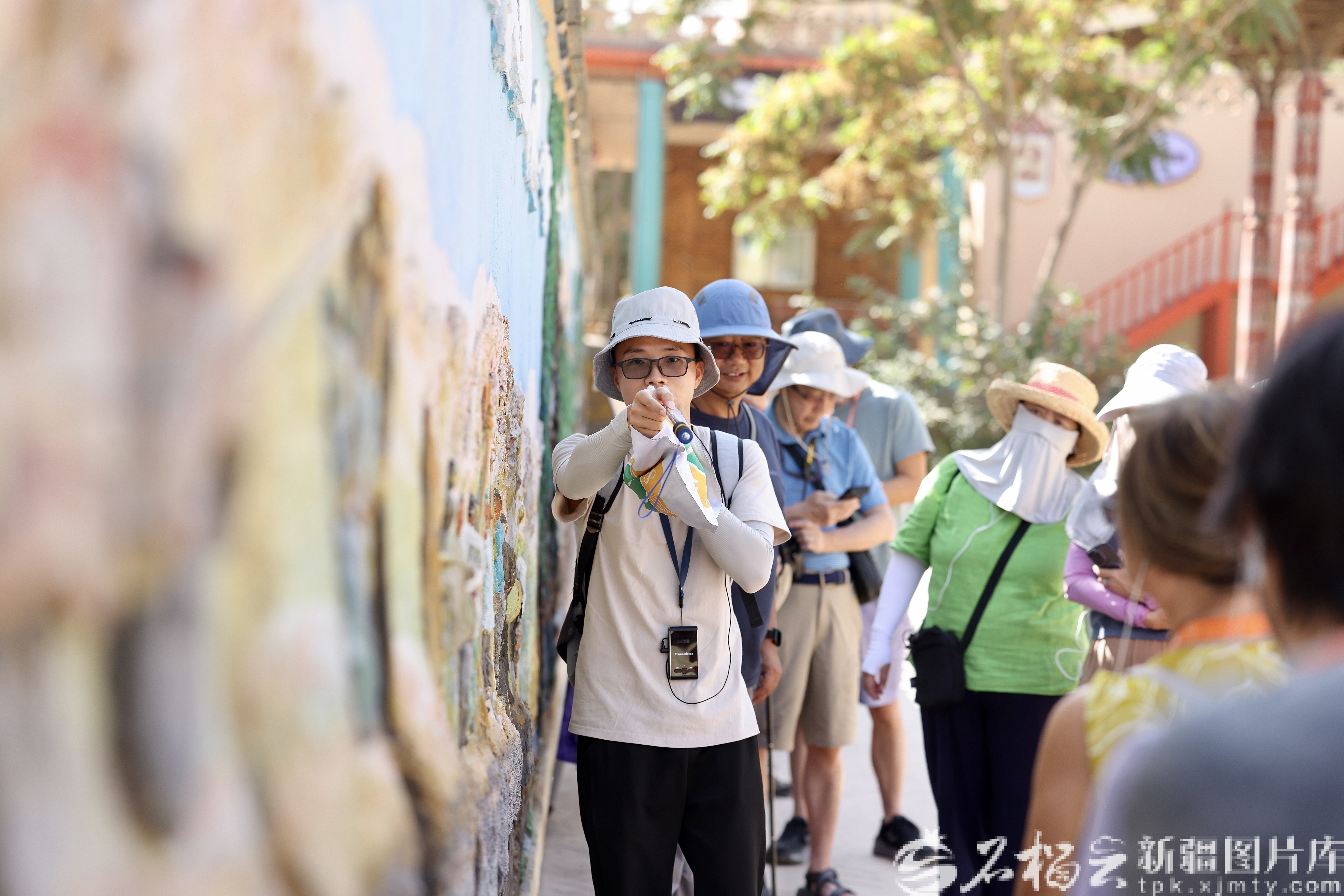 9月10日,坎儿井民俗园,导游正在向游客介绍坎儿井。