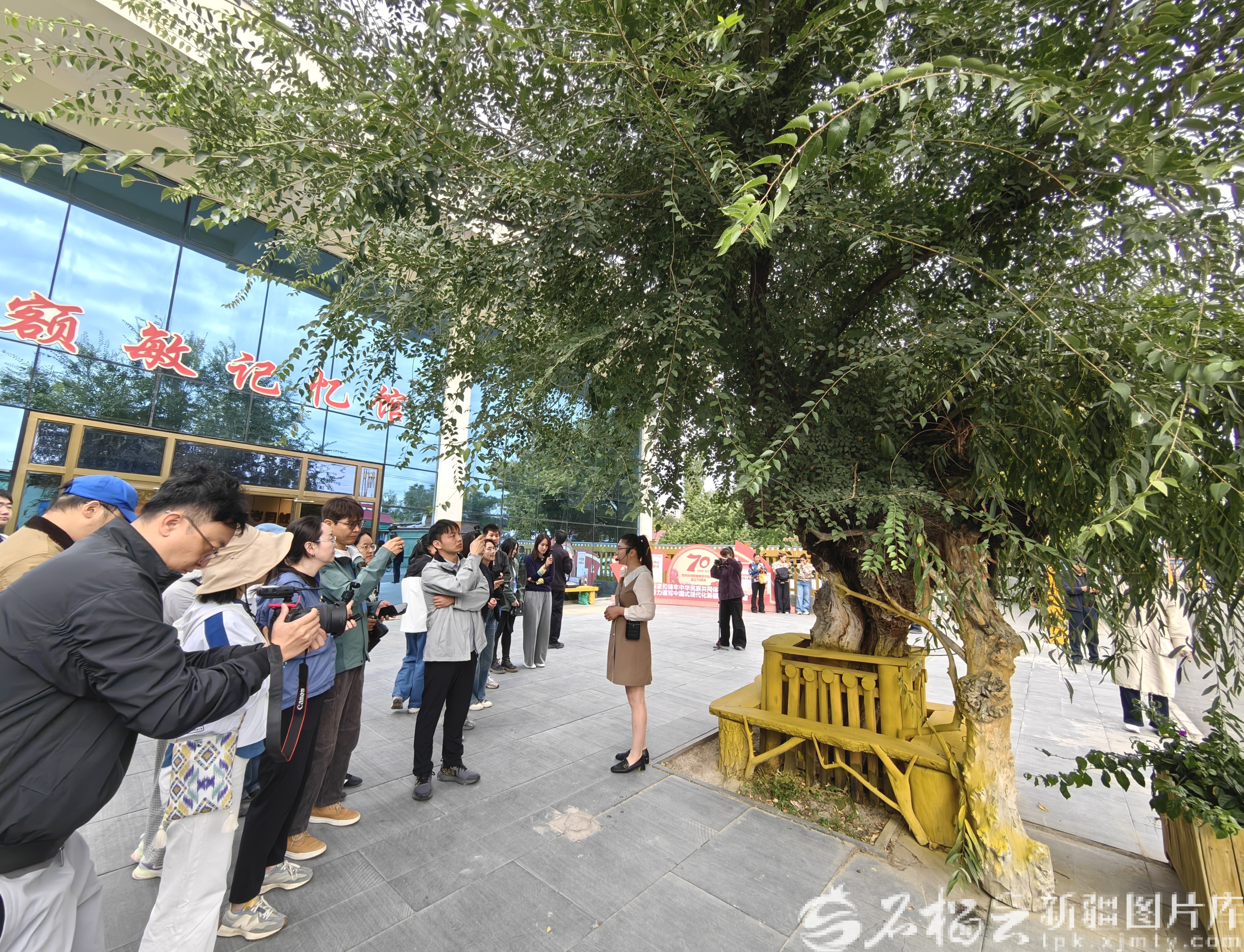 9月13日,采访团在额敏县记忆馆前了解榆柳巷名字的来历。