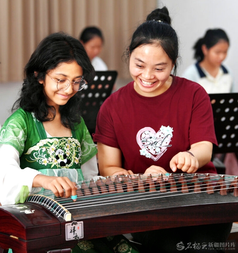 7月5日,各族小朋友在叶城县昆仑国学书院学习古筝。该院设置了国学经典、国学体验等课程,大力传承和弘扬中华优秀传统文化。天山网-新疆日报记者约提克尔·尼加提摄