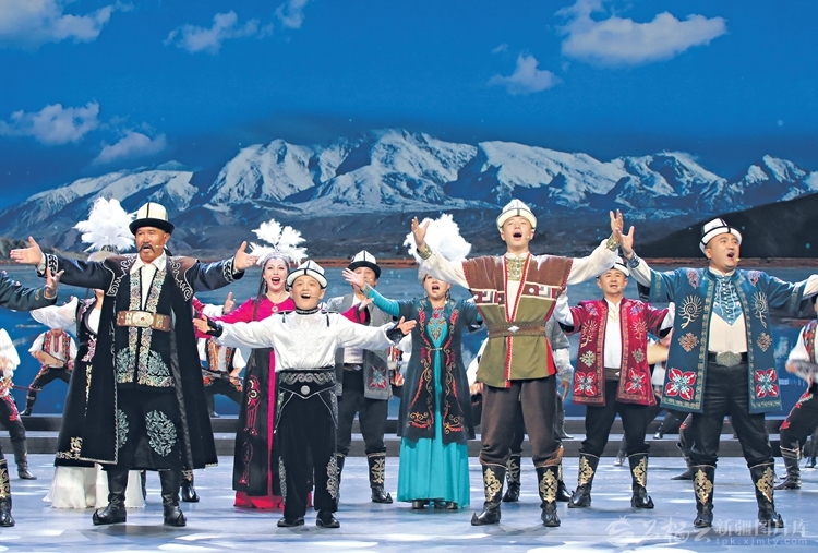 9月24日晚,庆祝新疆维吾尔自治区成立70周年文艺晚会《美丽新疆》在乌鲁木齐文化中心大剧院举行。图为节目《天山青松根连根》《燃情岁月》《我的爱献给祖国母亲》。天山网-新疆日报记者蔡增乐、汤永摄