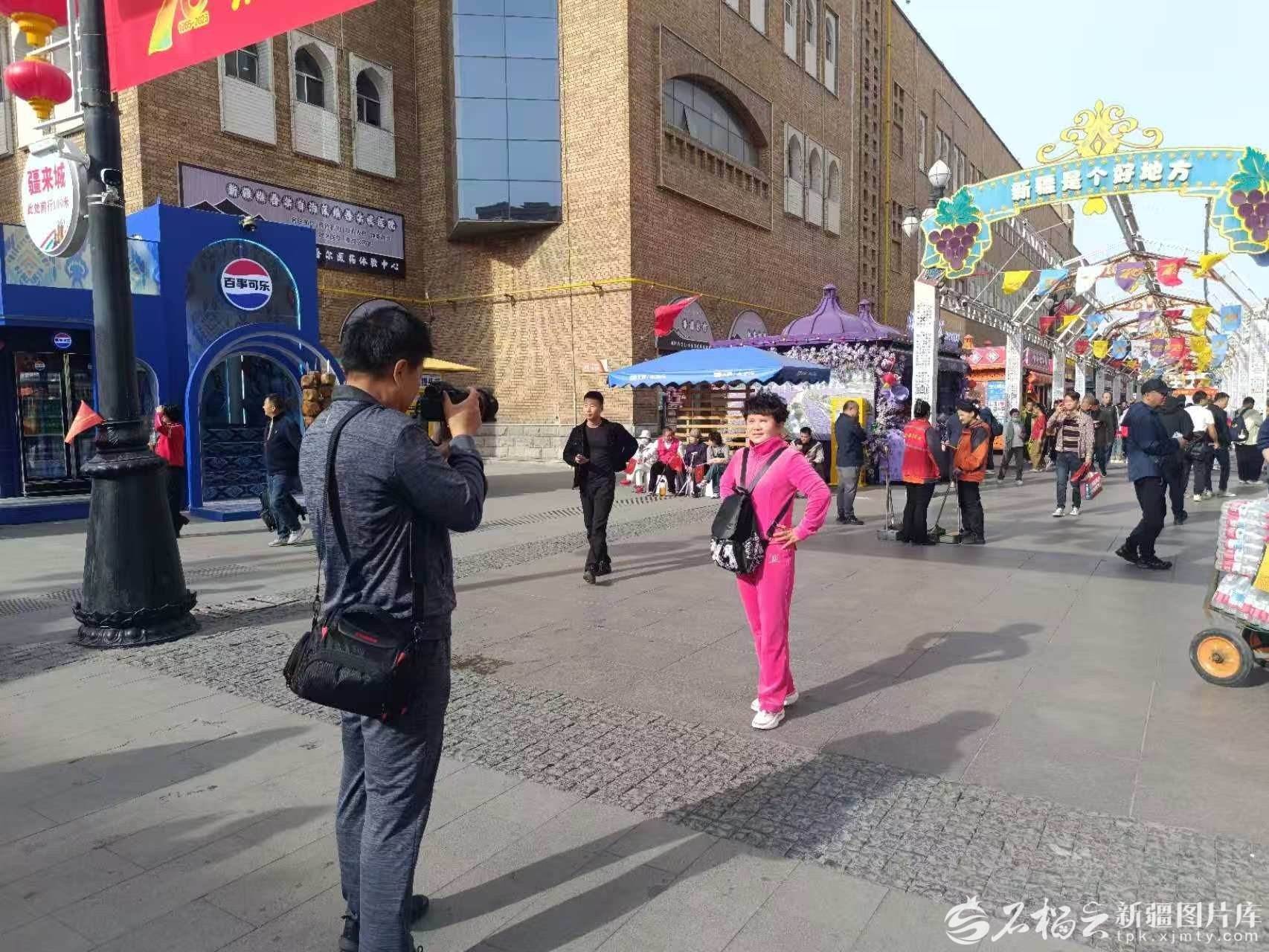 山西游客周泽夫妇来新疆自驾旅游已有近20天了,一走进大巴扎,立即进入“角色”,妻子兴高采烈地挑选有新疆特色的打卡点,周泽就是“专职摄影师”。“新疆实在太美了,都舍不得离开,这个国庆节特别有意义。”在新疆旅游期间,他们被新疆的发展和变化深深震撼,“我们有幸感受新疆的变化,特别有意义。”周泽说。