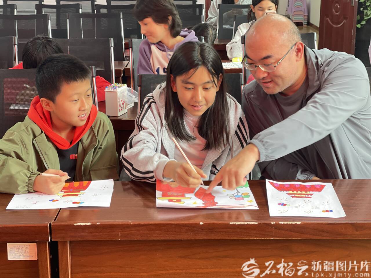 10月1日,在乌鲁木齐市沙依巴克区雅玛里克山街道青峰社区,学生们在参加“国庆绘中国梦 点燃爱国情怀”主题绘画活动。马红艳摄