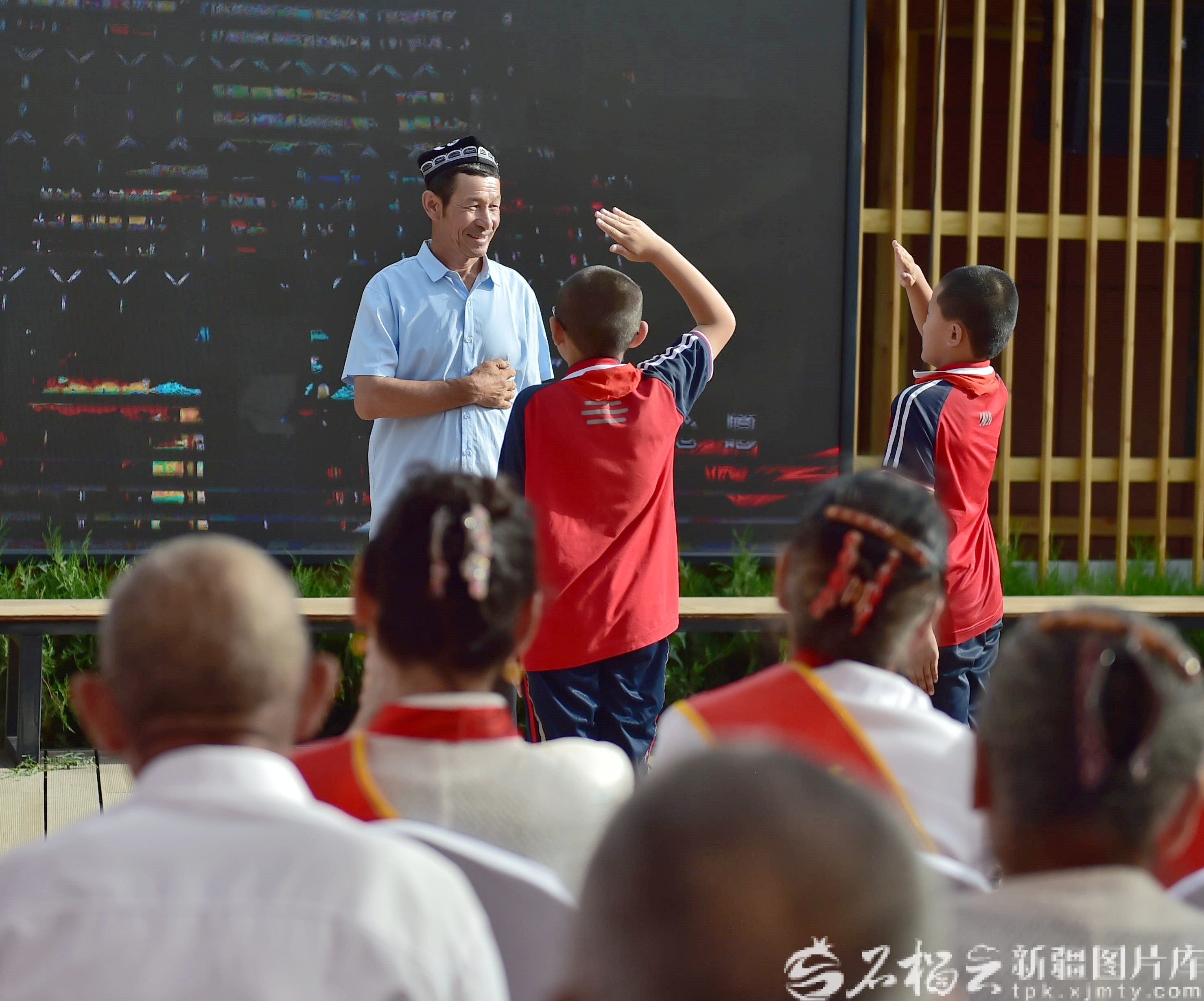 2024年6月30日,阿力甫·买买提在村委会给乡亲们讲述他2023年10月骑自行车到天安门广场观看升国旗仪式的故事。