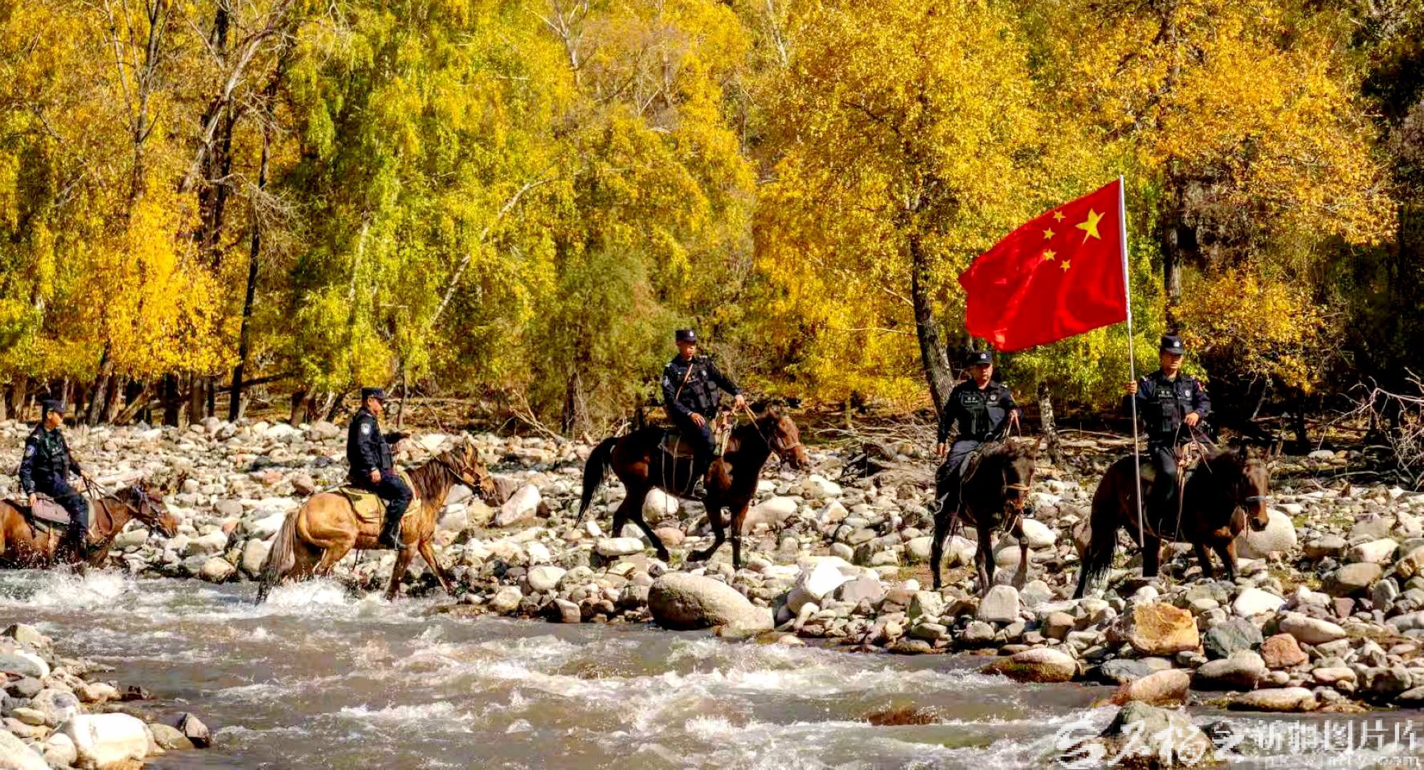10月1日,新疆出入境边防检查总站博州边境管理支队小营盘边境派出所民警骑马巡护边境。乌依龙 摄