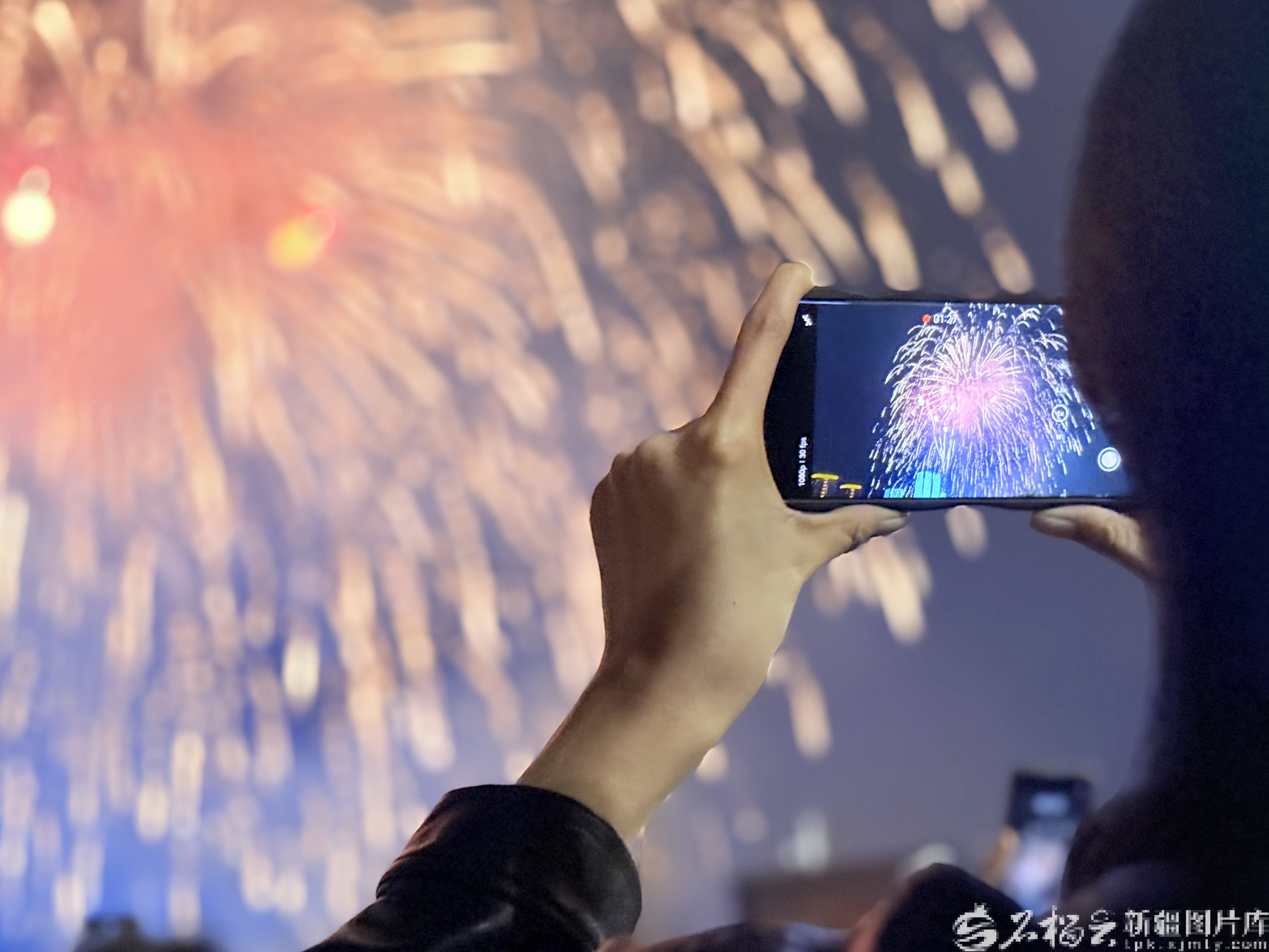 10月1日,“家国共此时 光焰耀天山”大型焰火燃放活动现场,八方游客用手机记录美好。天山网-新疆日报记者 孙芳婷摄